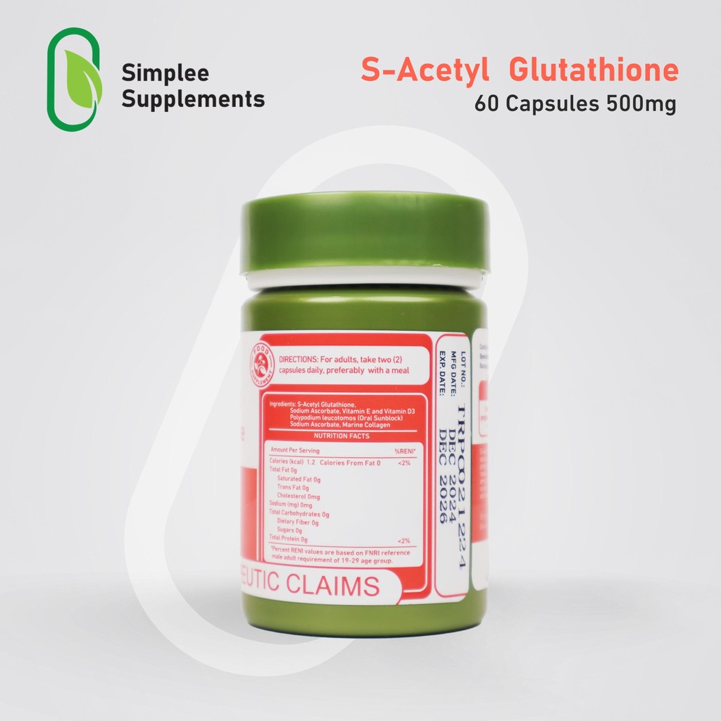 Simplee S-Acetyl Glutathione 500mg | 60 capsules – Brightening & Oral Sunblock Support