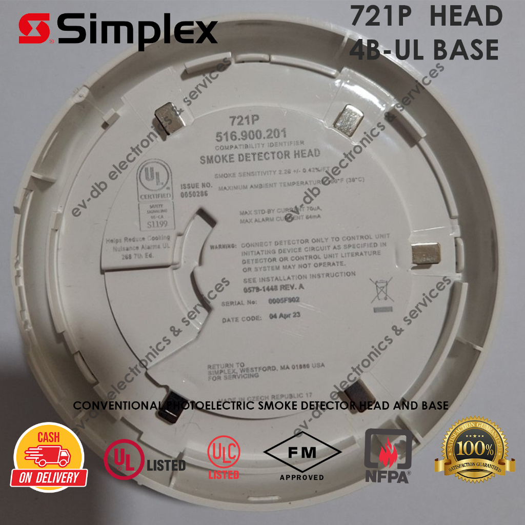Simplex Conventional Smoke Detector Head & Base 721P / Previously Tyco 601P ev-db