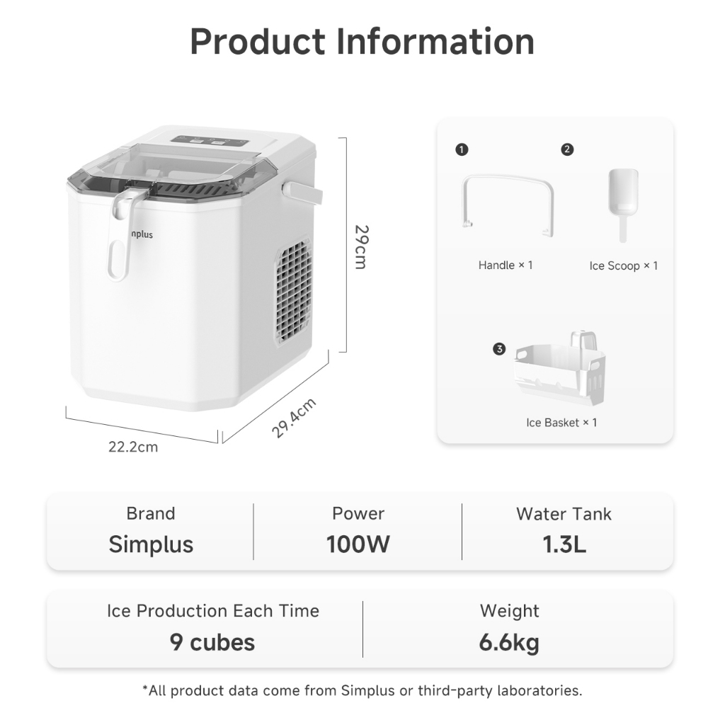 Simplus Ice Maker Household 1.3L Water Tank Compact Design Rapid Ice Production
