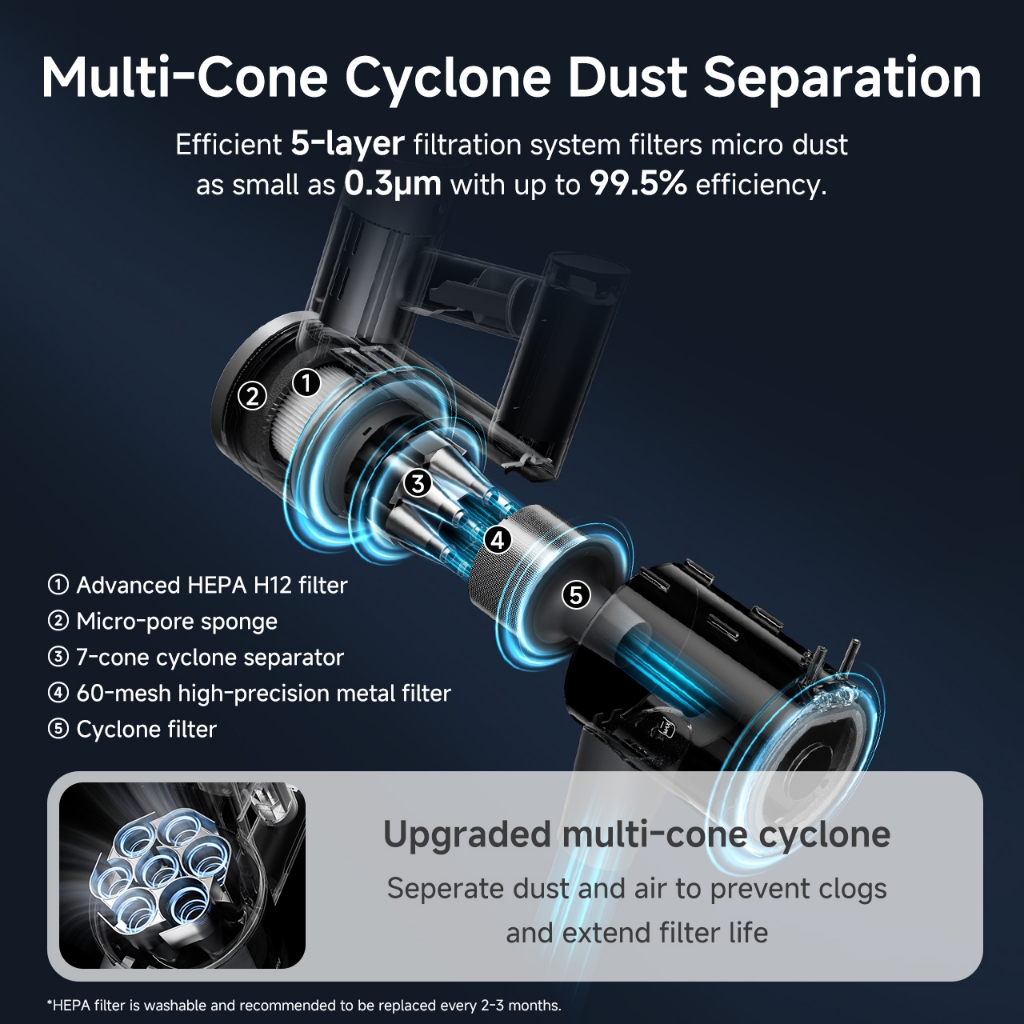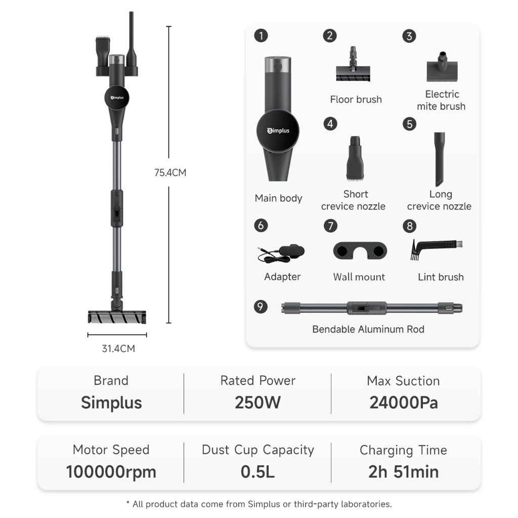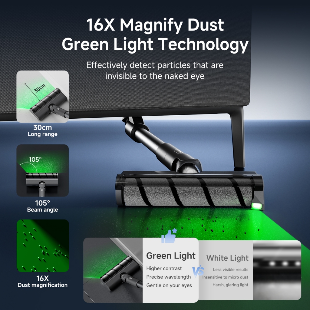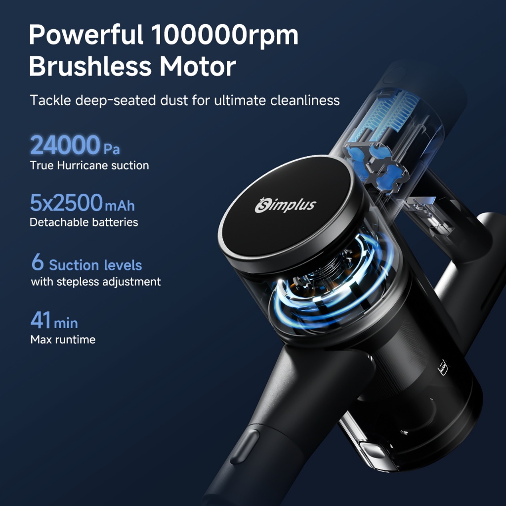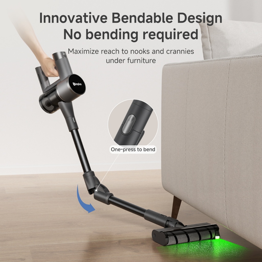 Simplus Cordless Vacuum Cleaner 24000Pa Bendable Design 6 Suction Settings Green Light Detection