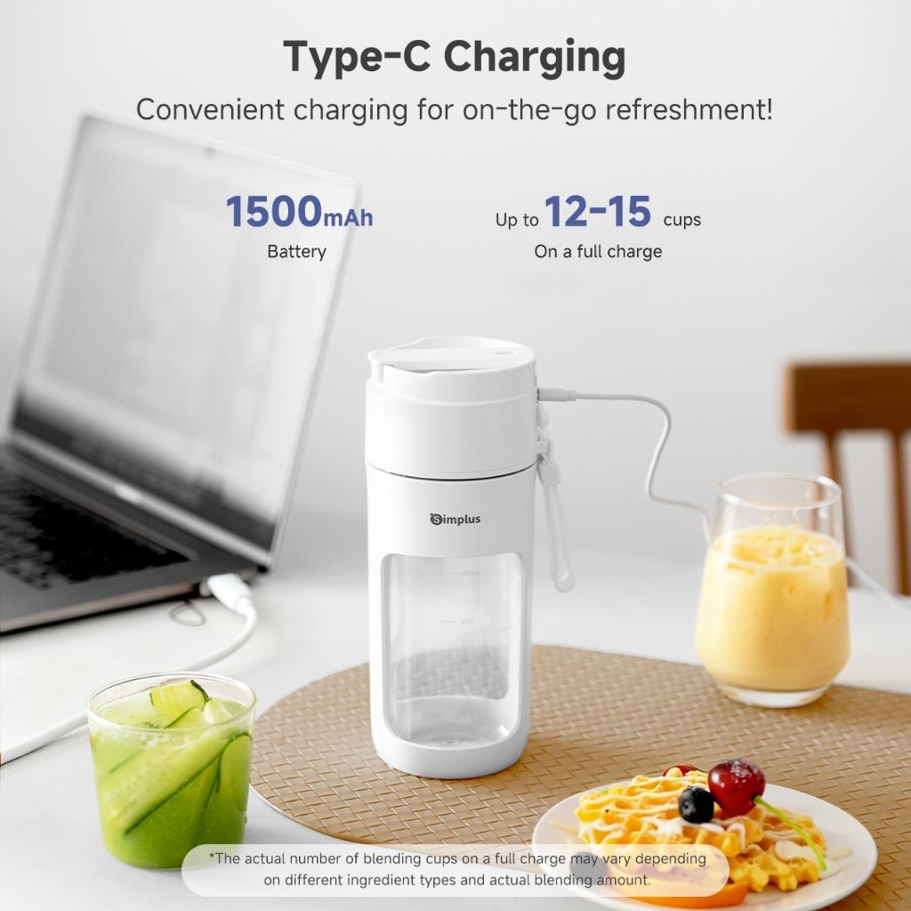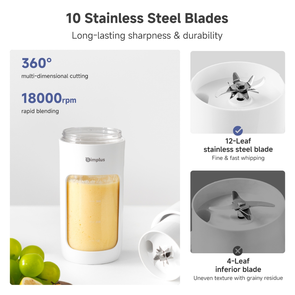 Simplus Portable Juicer Wireless Blender 400mL Capacity For Shakes and Smoothies Upgrade 12-Blades