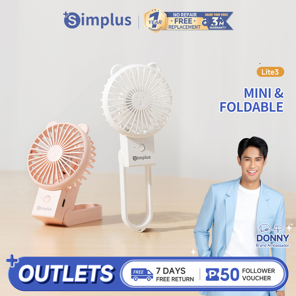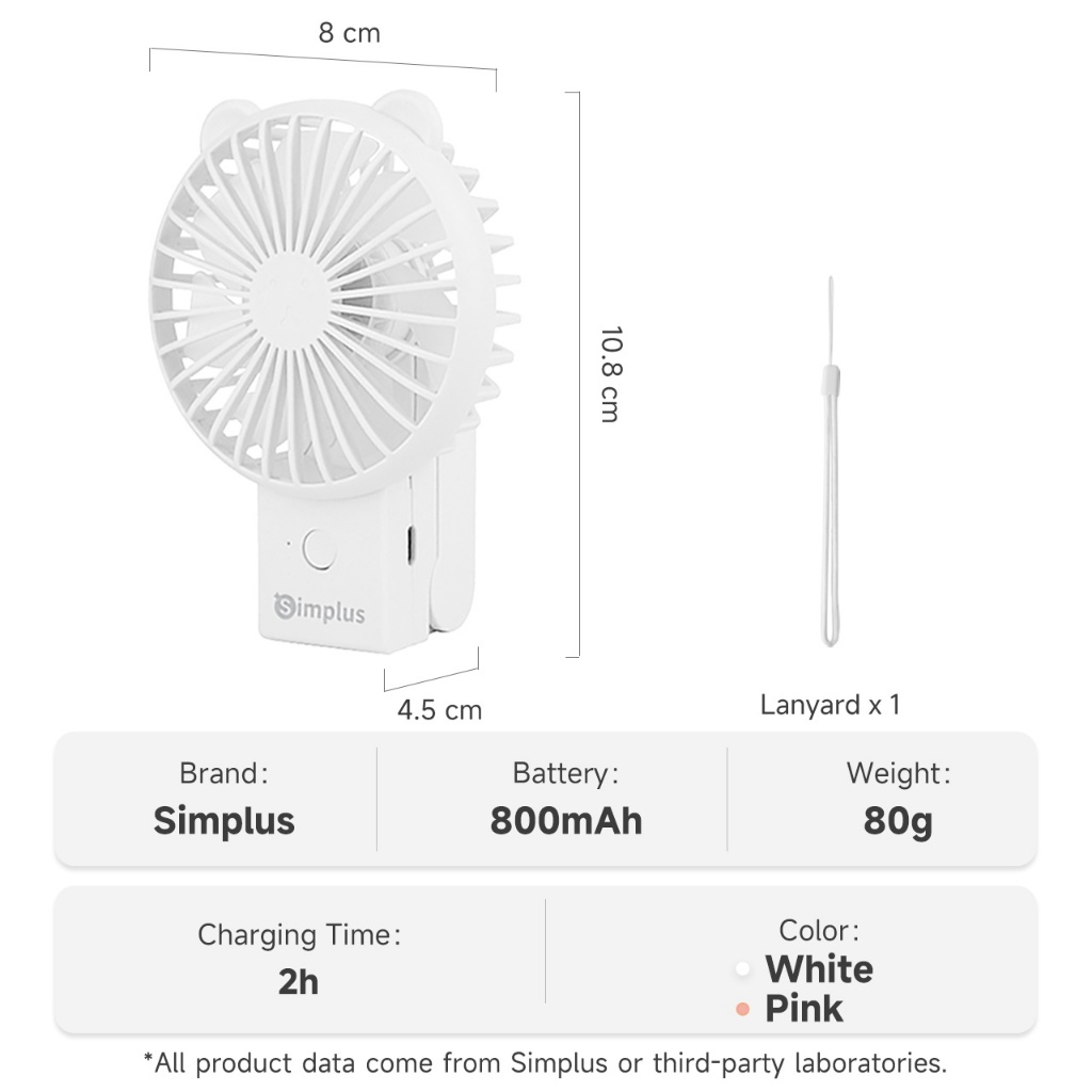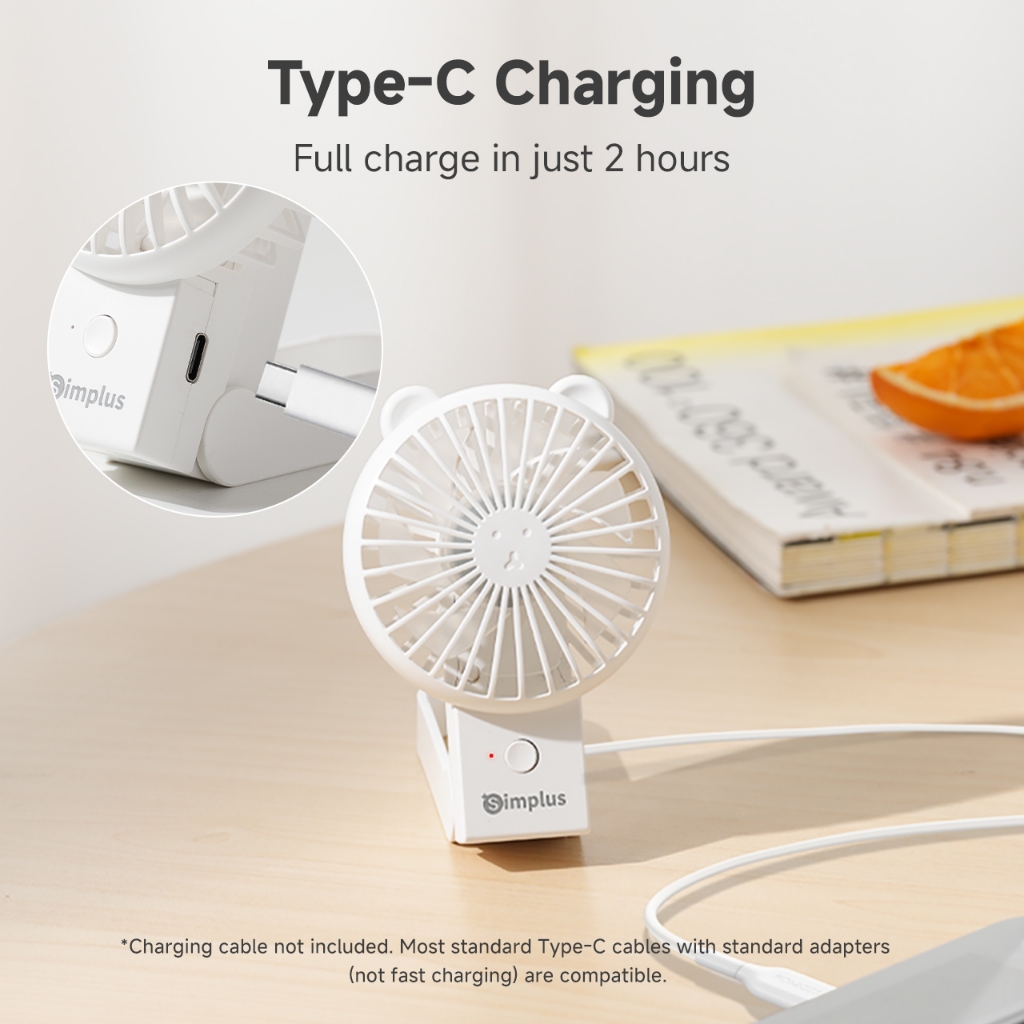 Simplus Mini Fan Handheld Portable Foldable 3 Speed Settings Type-C Charging