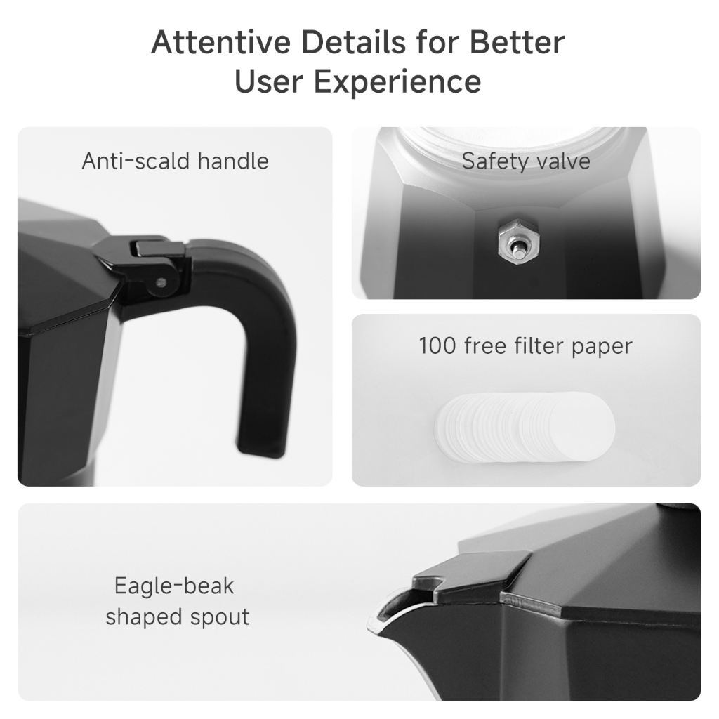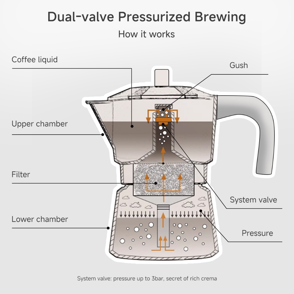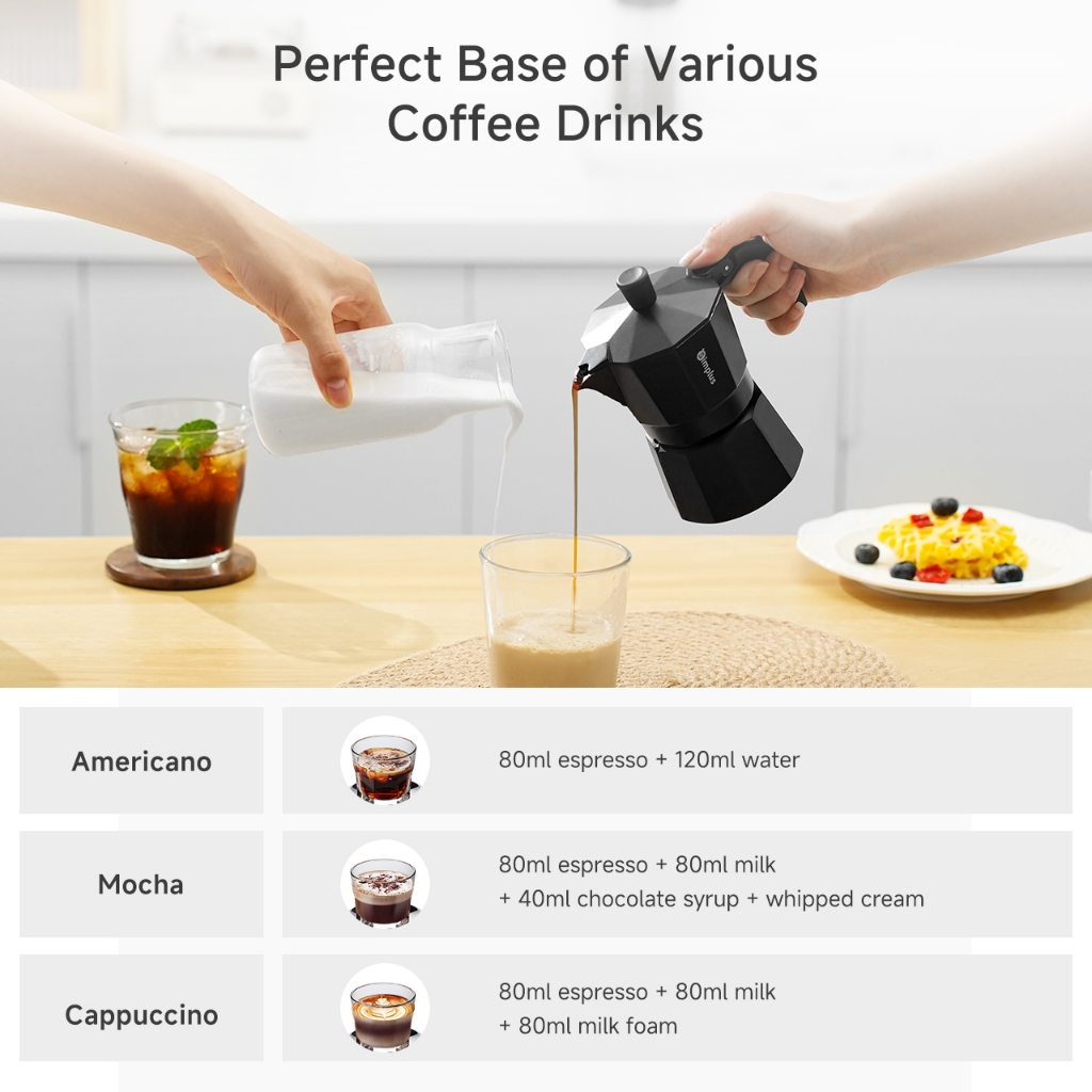 Simplus Moka Pot Dual-Valve Pressurized Extraction Rich Crema Intalian Espresso Coffee Maker