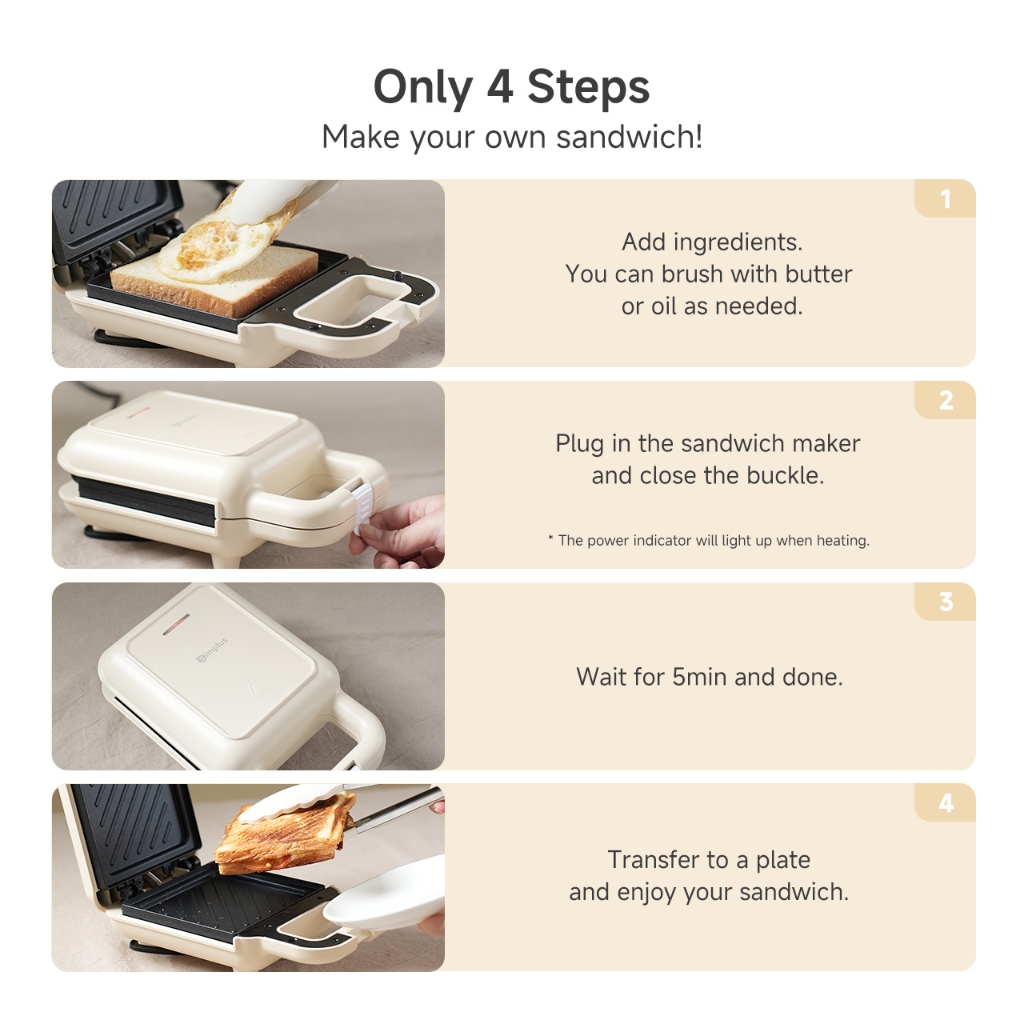 Simplus Sandwich Maker Non-stick MultiFunctional Bread Toaster