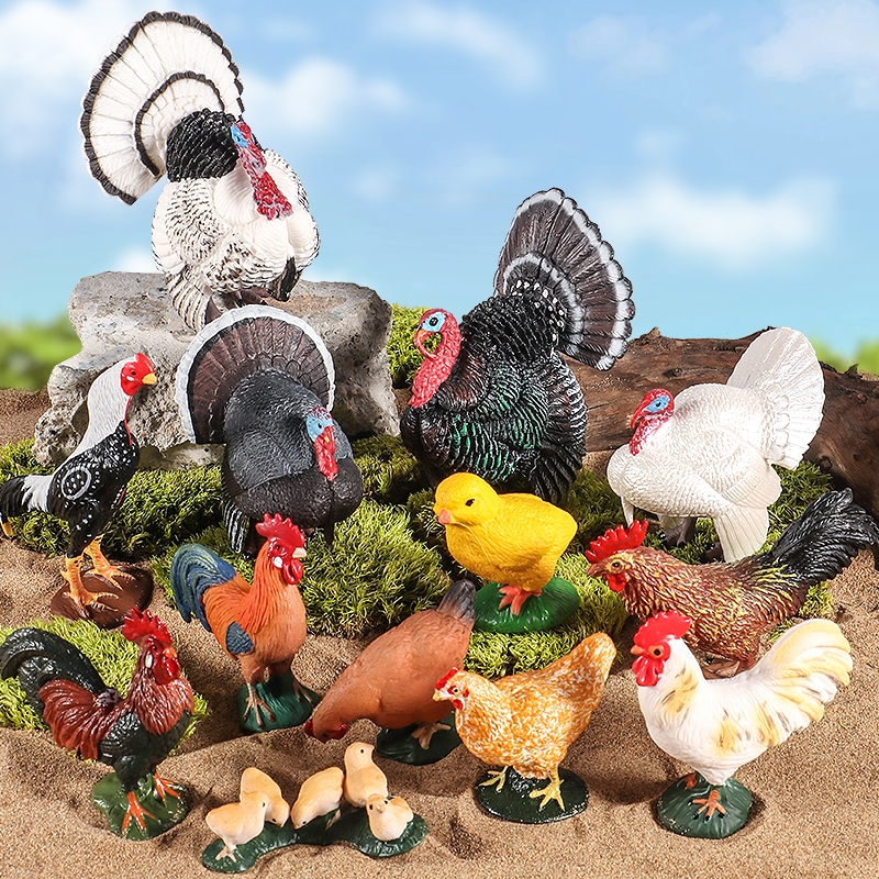 Simulation Farm Animals Poultry Turkey Rooster Hen Figurines Model Action Figures Educational Toy For Children