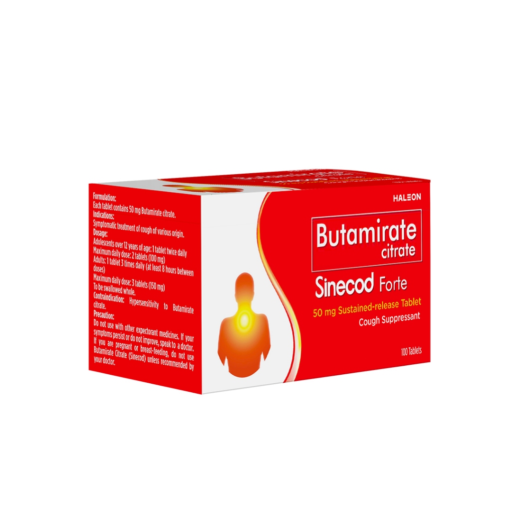 Sinecod Forte 100 Tablets Butamirate Citrate Antitussive for Long-lasting Relief from Dry Cough