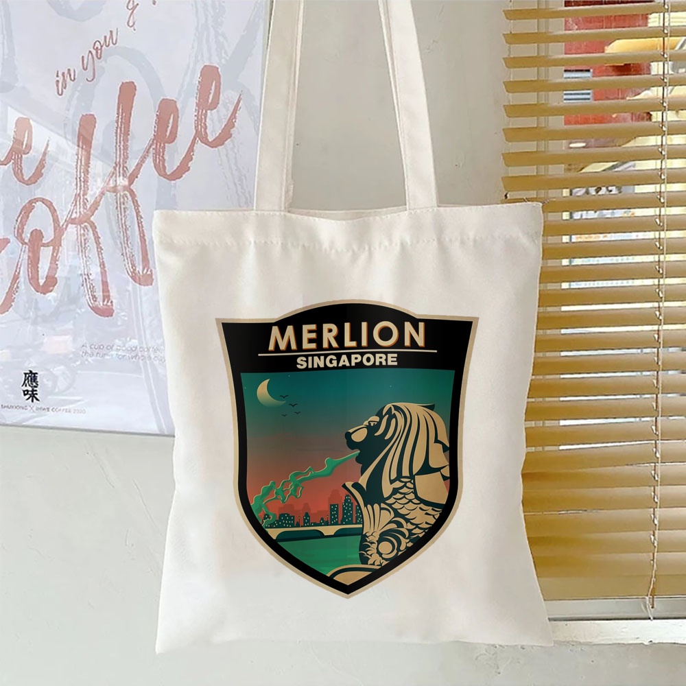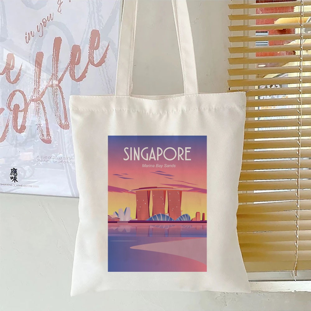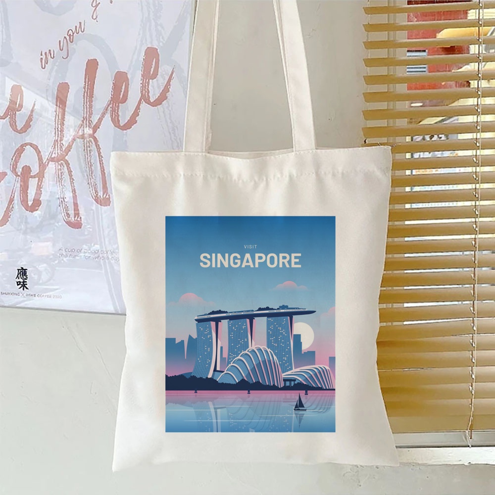 Singapore City Print White Tote Bags Fashion Travel Bag Singapore Commemorative Shoulder Bag