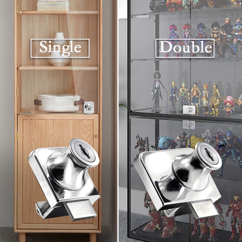 Single Double Glass Lock Showcase Push Sliding Locks Zinc Alloy Display Cabinet Door Lock with Key