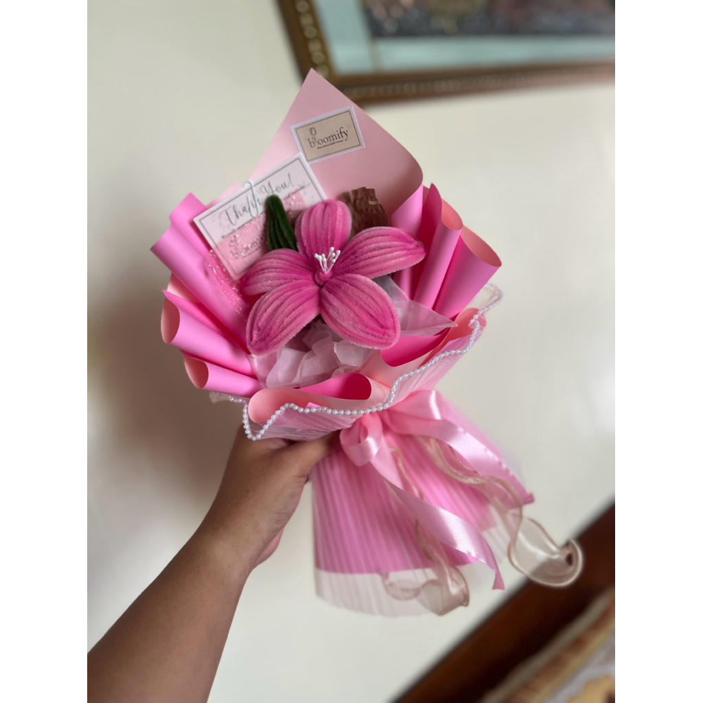 Single Lily Fuzzy Wire Bouquet (with free letter card)