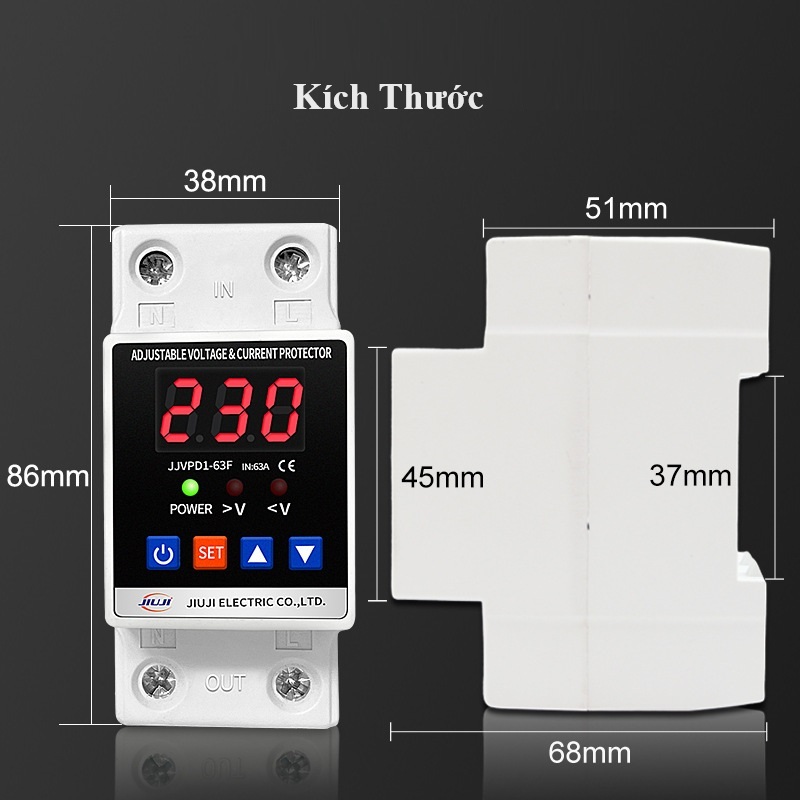 Single-phase 63A overvoltage and low voltage protection device with adjustable parameters, 1-phase voltage protection