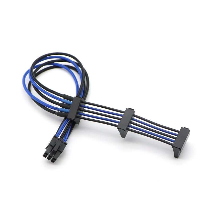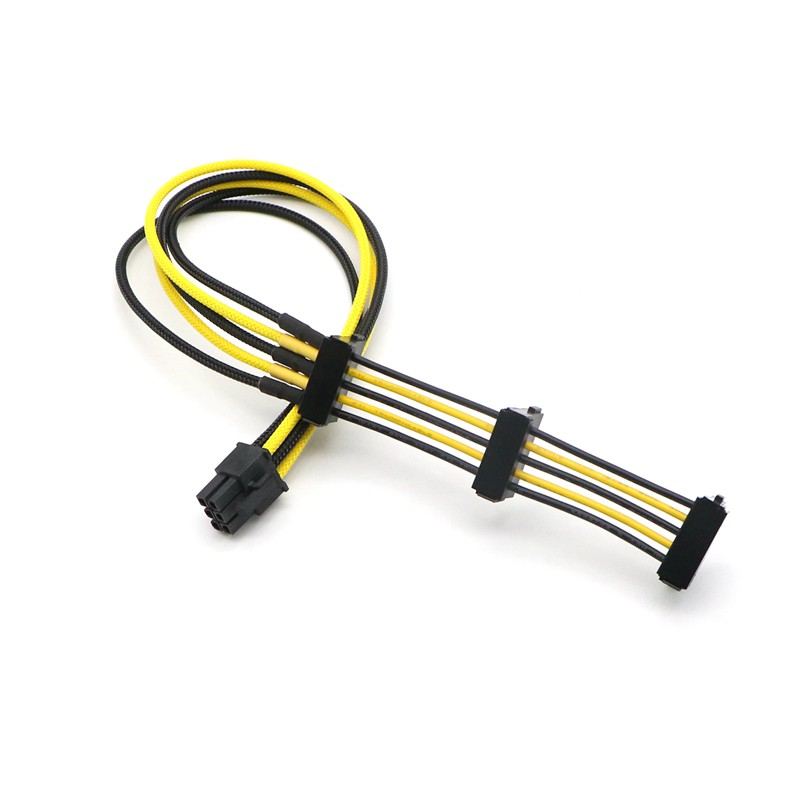 Singlen Sleeved 6Pin to 3x SATA 15Pin Modular PSU Power Cable for Seasonic PSU.