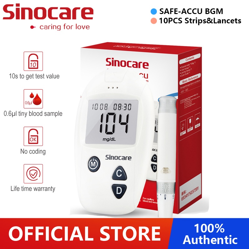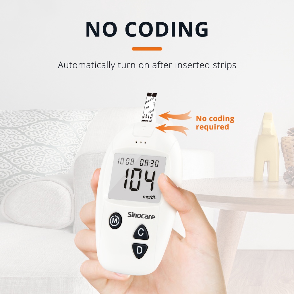 Sinocare Safe-Accu Blood glucose monitor Accurate Blood Sugar Meter Diabetic Test Kit with Code Free Strips Lancets