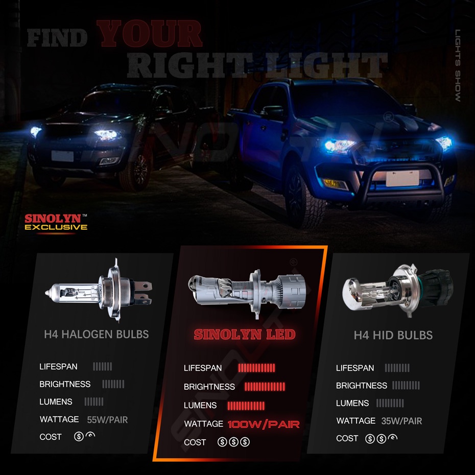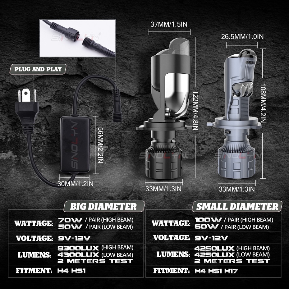 Sinolyn 100W Mini H4 Bi LED Hyperboloid Projector Lenses For Headlights HS1 H17 High/Low Beam LED Lamp Canbus Conversion Kit Plug & Play Motorcycle Car Accessories