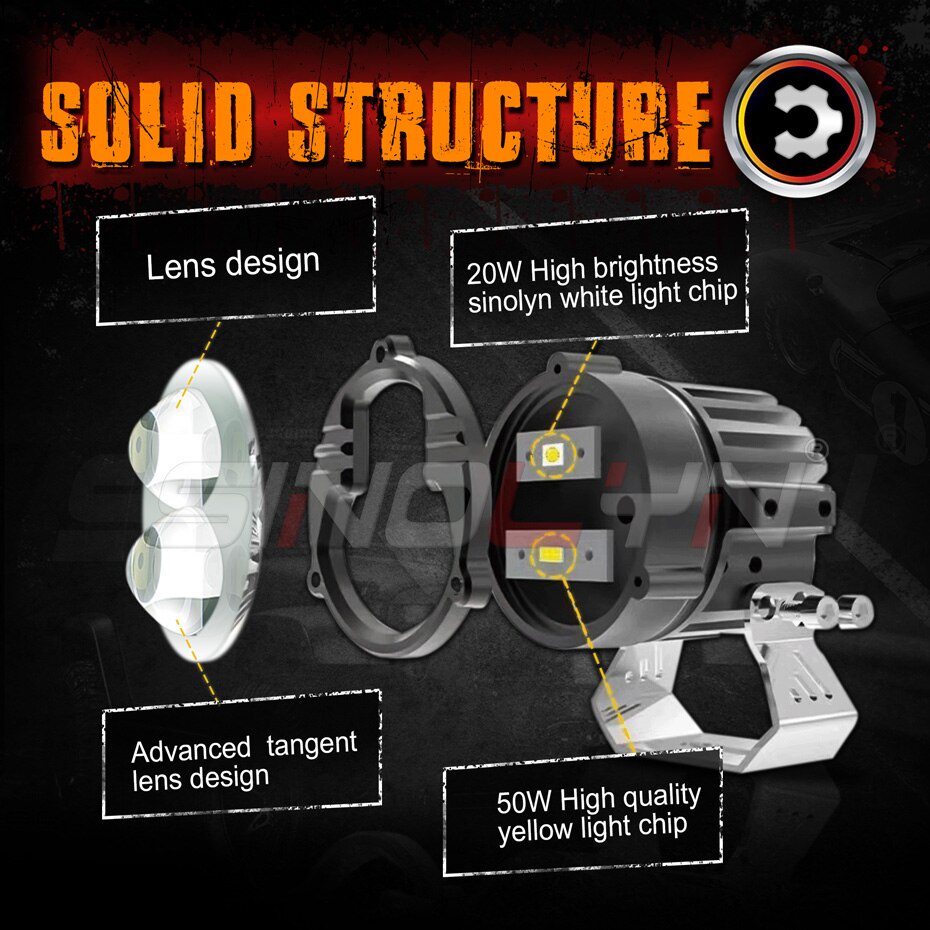 Sinolyn Mini Driving Light 140W Bi LED Fog Lights Auxiliary Light Work Light Bar Spotlight Combo Light For Cars/Motorcycle/SUV/ATV/Truck Universal Lens Waterproof DIY