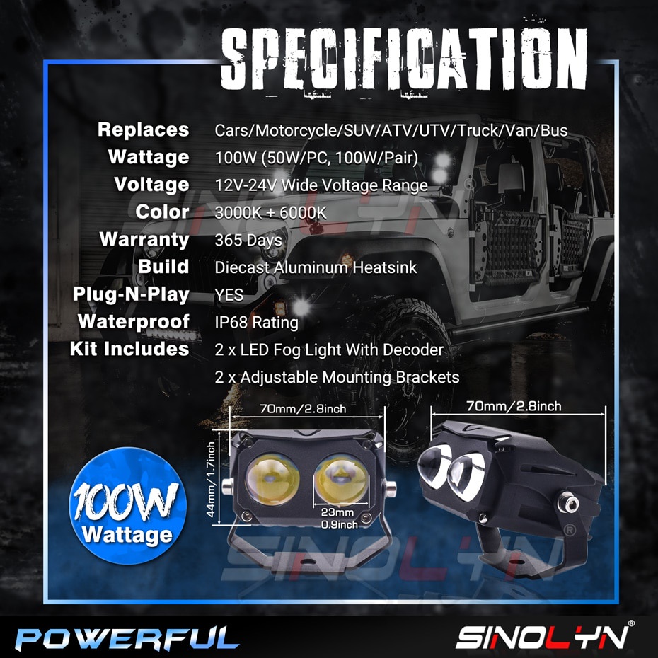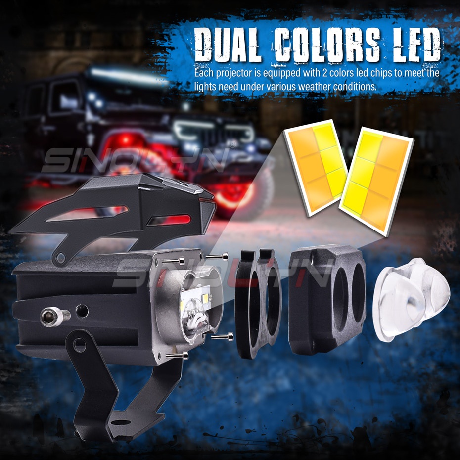 Sinolyn Mini Driving Light Motorcycle 100W Off Road LED Auxiliary Light Bar Work Light Fog Lamp Dual Colors External Spotlight For Scooters 12V 24V