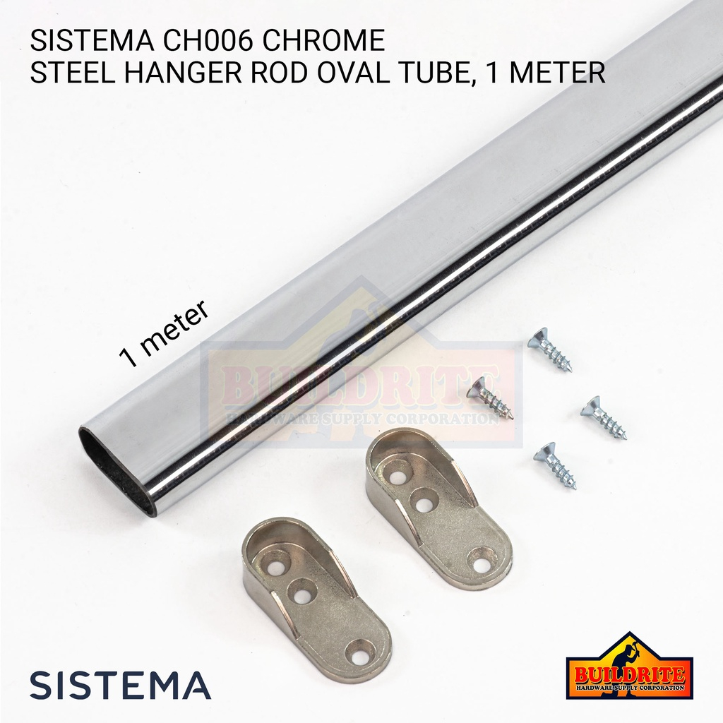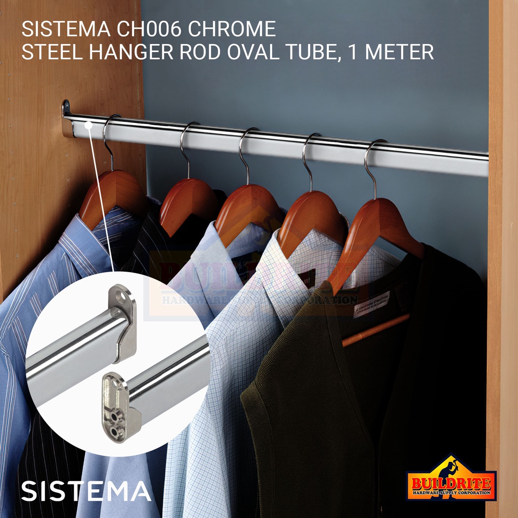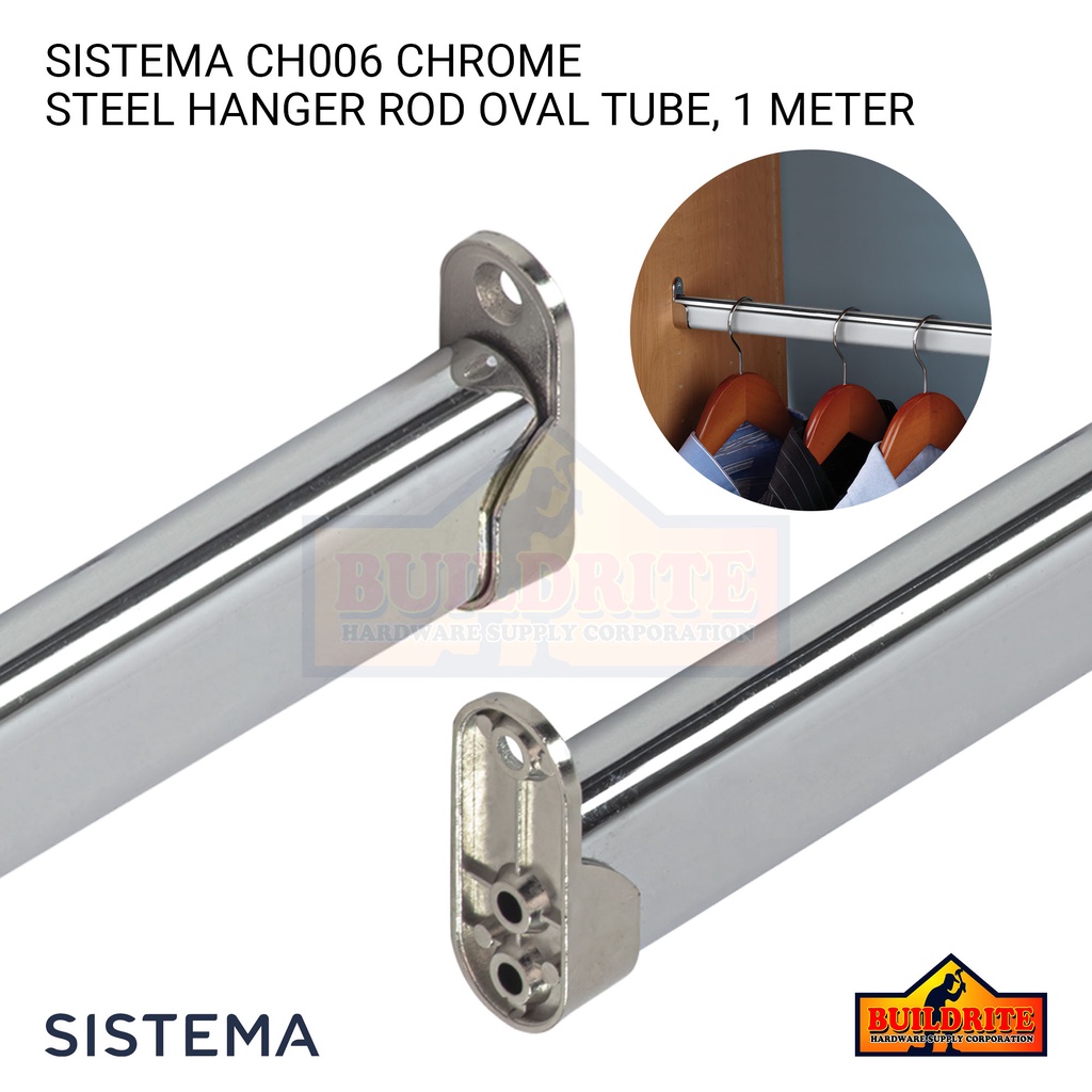 Sistema CH006 & CH006HA 1Meters Chrome Steel Steel Hanger Rod Oval Tube and Oval Flange For Wardrobe