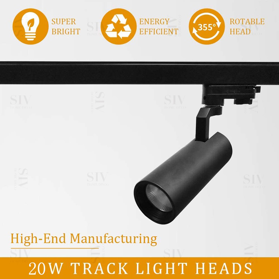 Siv 20W Track Light Set 4 Tracking Lights + 1 Track Spotlight Rail Led Cob Lens