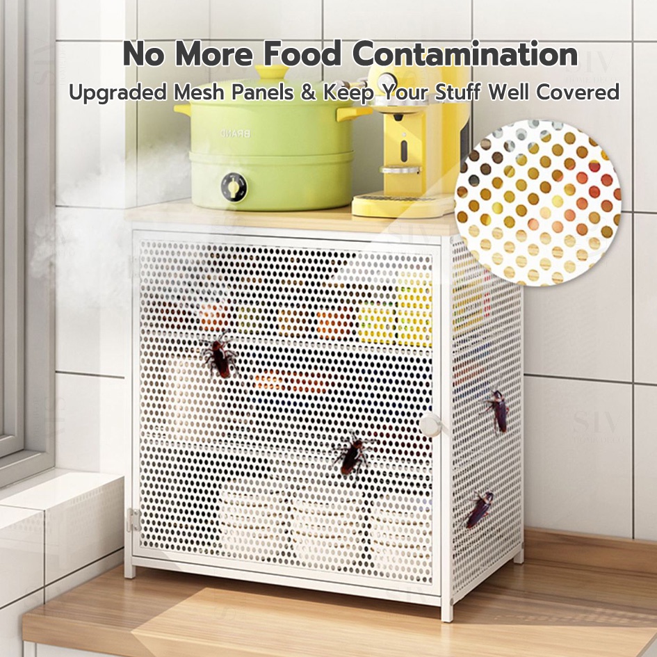 Siv Kitchen Cabinet Rack Countertop Organizer Shelf With Door For Dish Spice Storage