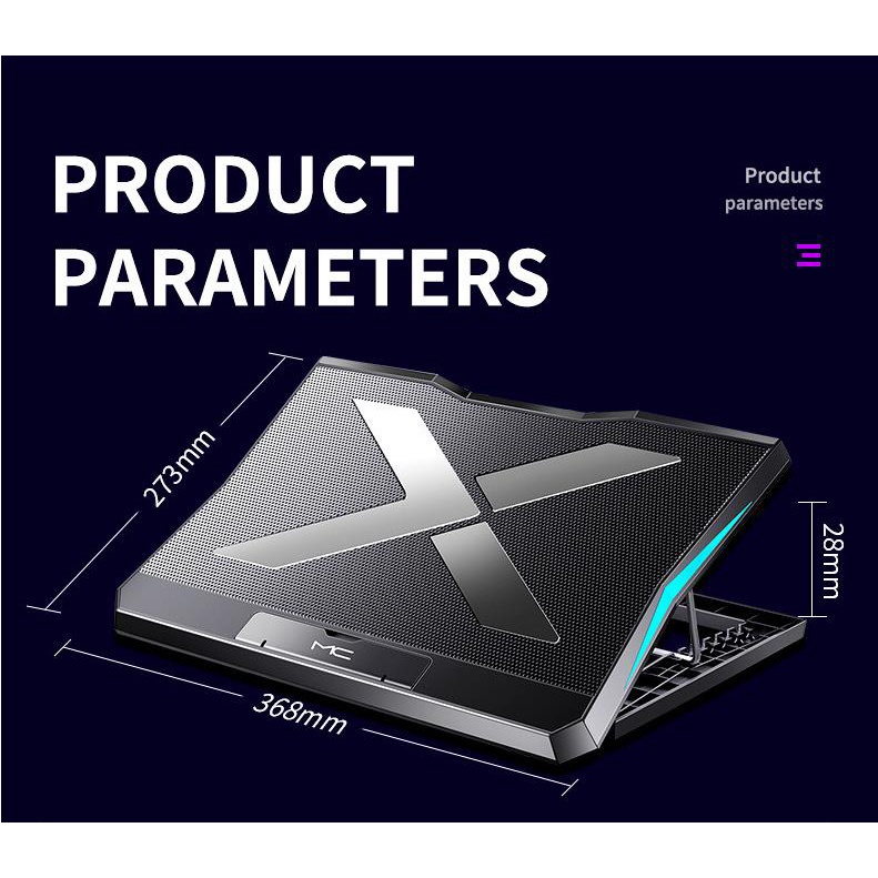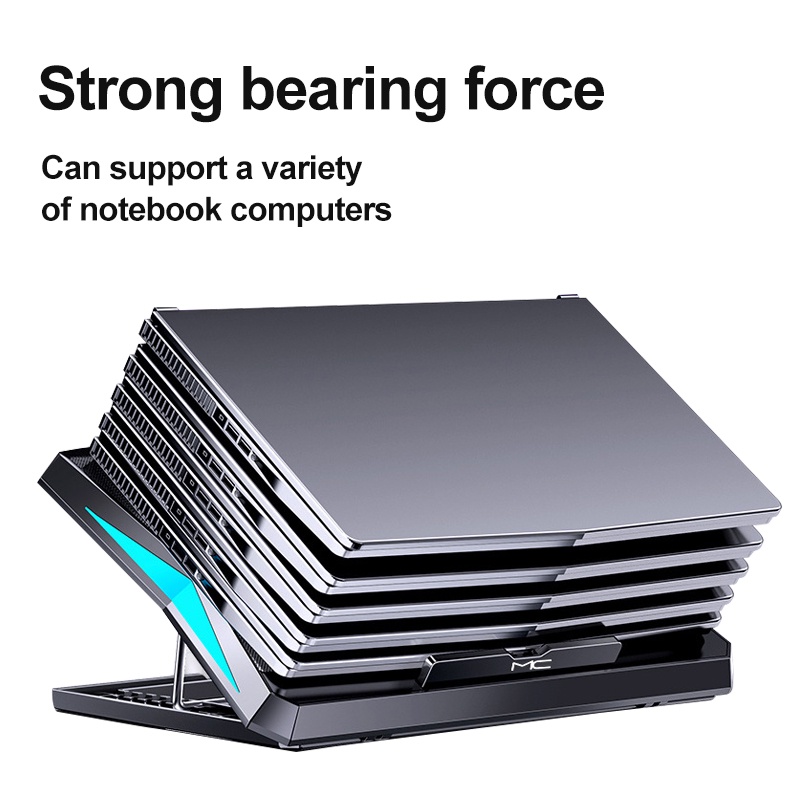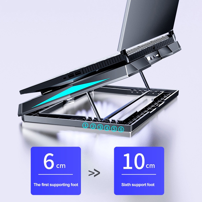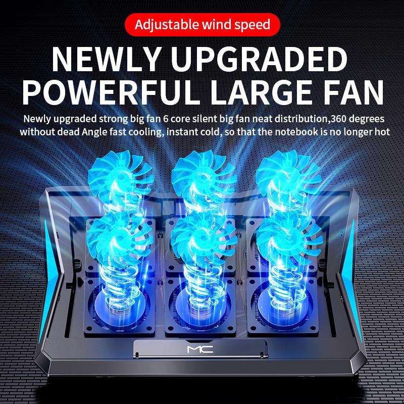 Six Fan Laptop Cooling Pad Two USB Port RGB Lighting Laptop Notebook Stand for Laptop 12-18 inch