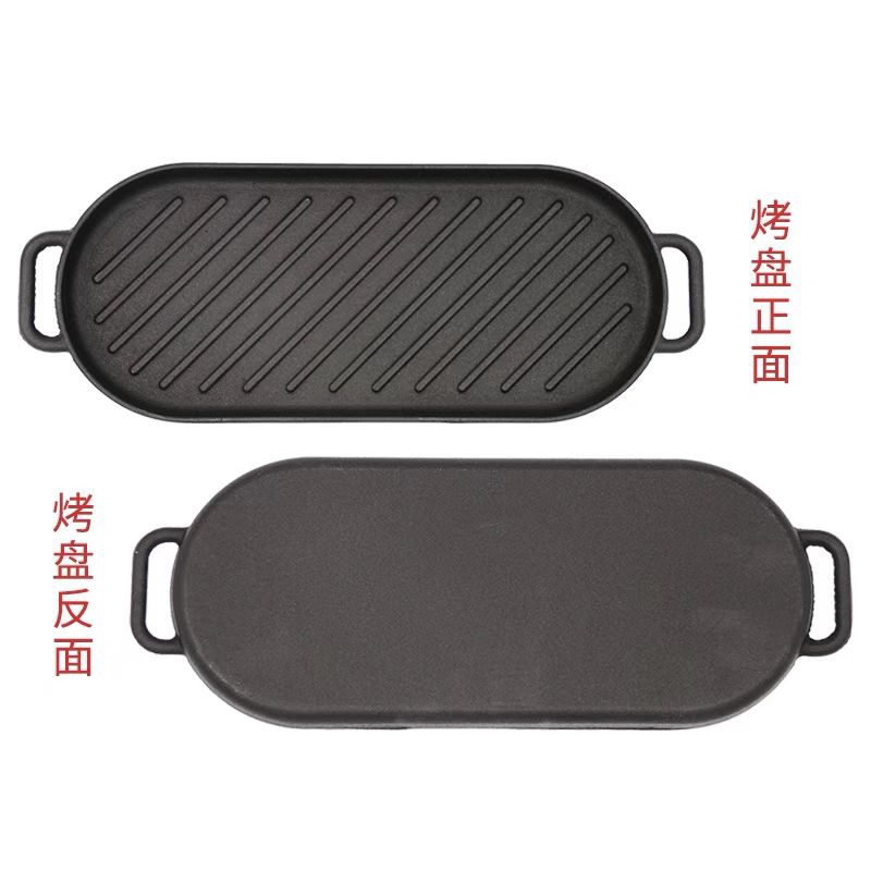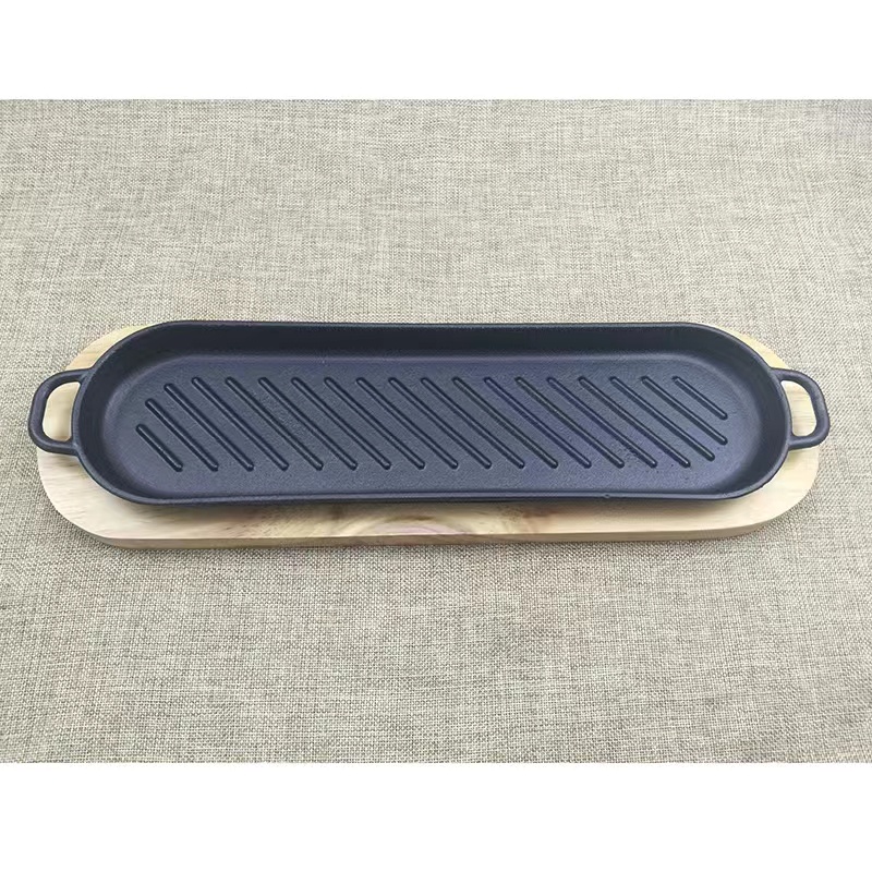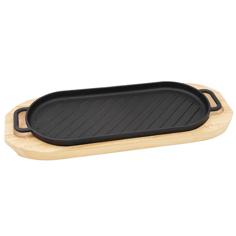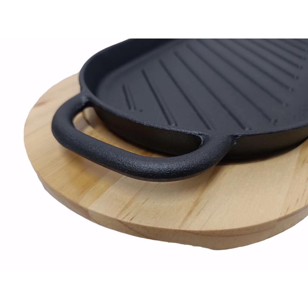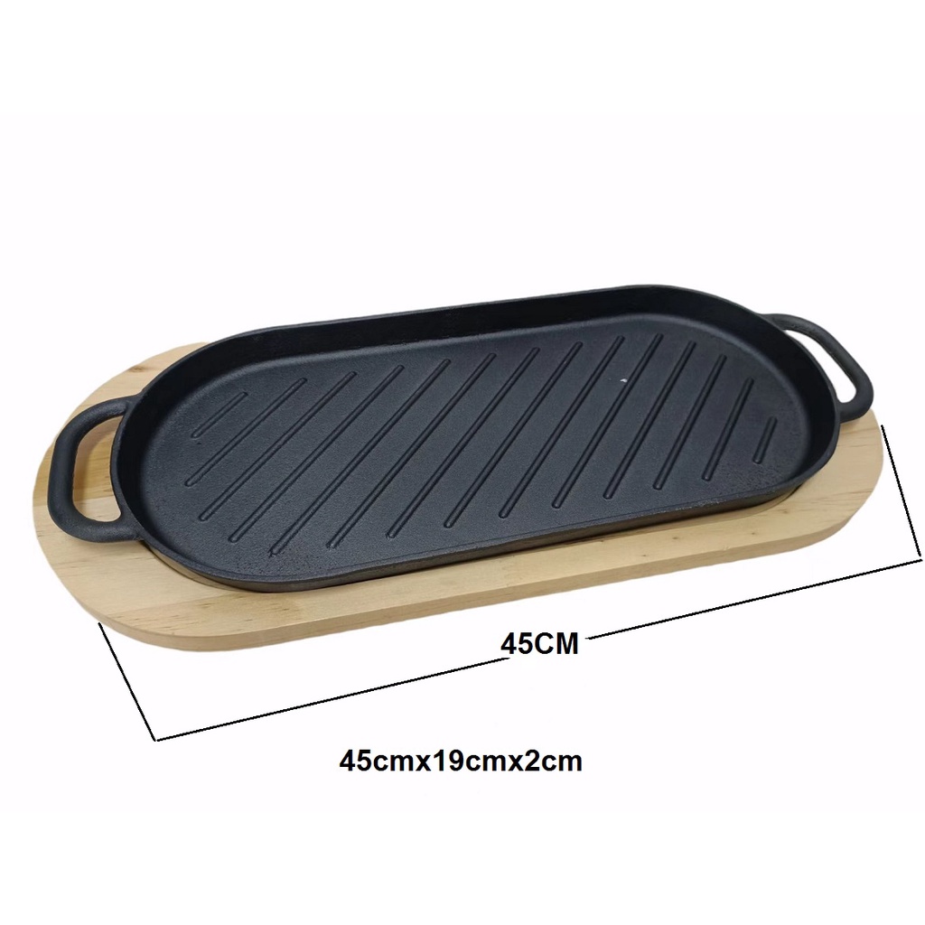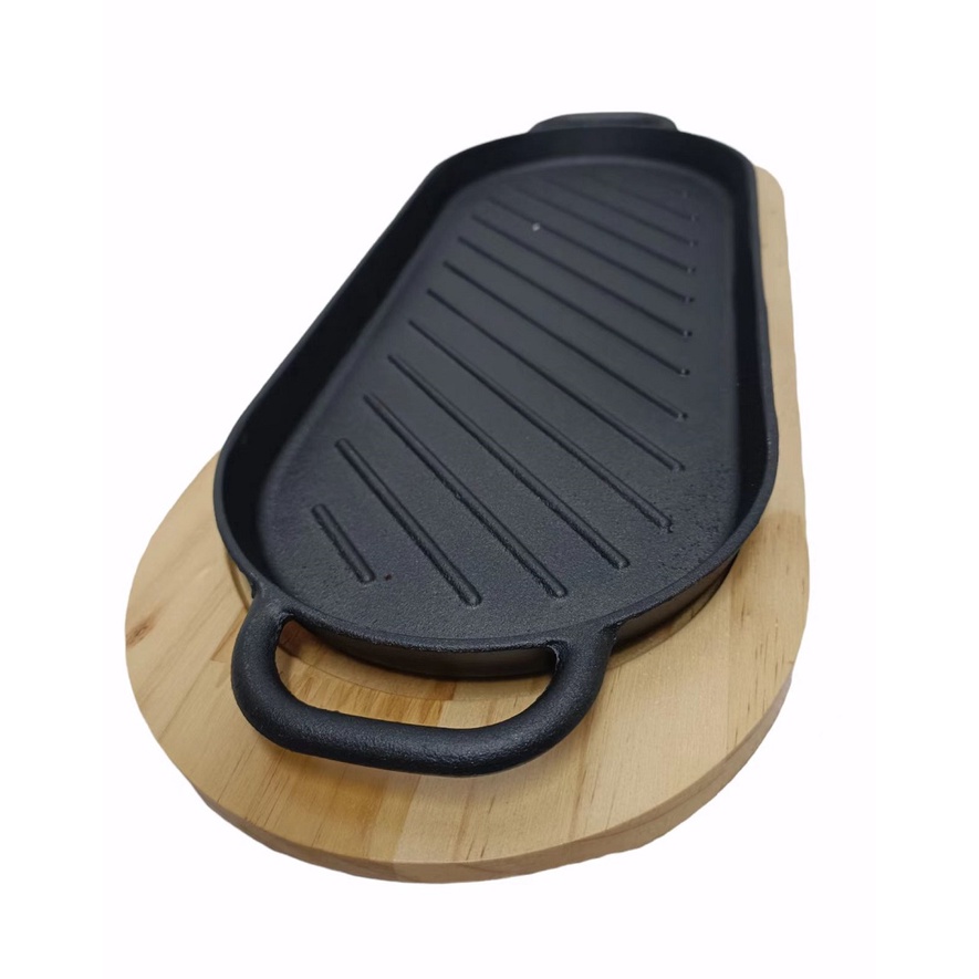 Sizzling Long Oval Plate With Handle Many Sizes comes with Wood Holder Cast Iron