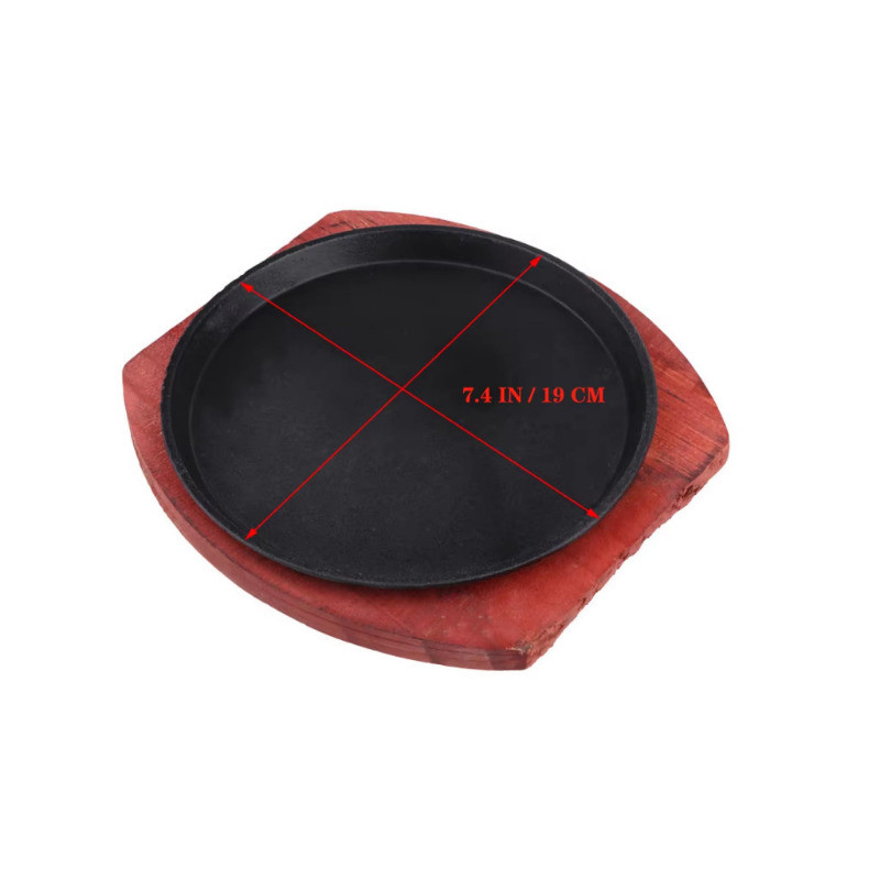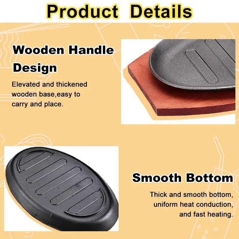 12 inch Oval Sizzling Plate Cast Iron With Wooden Steak Plate Non-Stick Grill Cookware Baking Tray