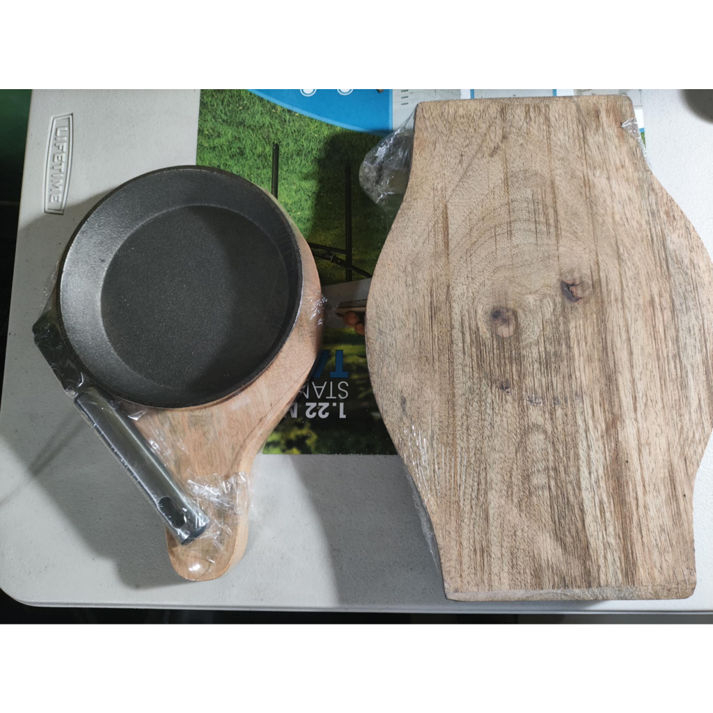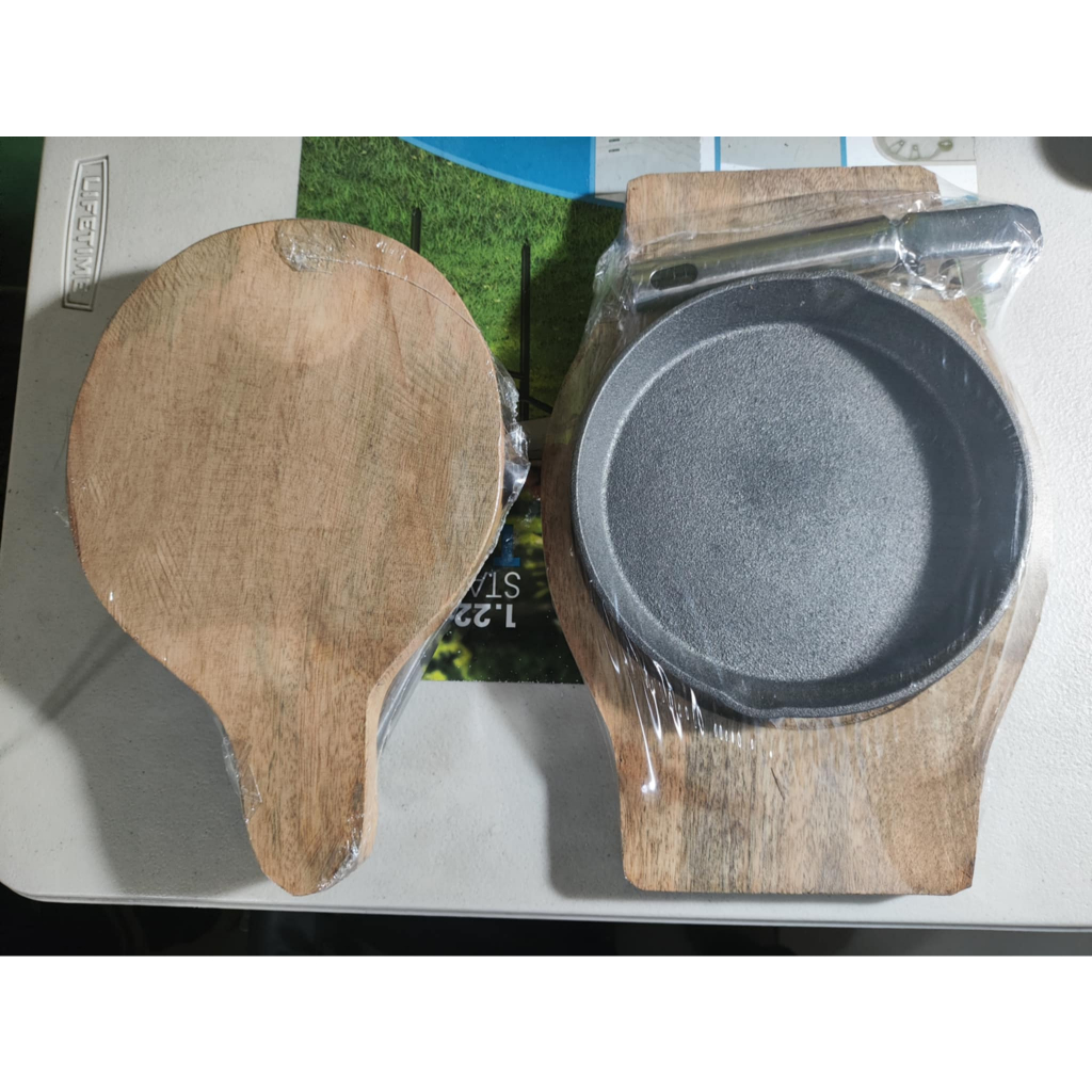 Sizzling plate Round 6 or 7 (Cast Iron Plate, With Wood, With Stainless Handle)