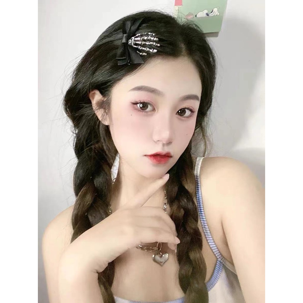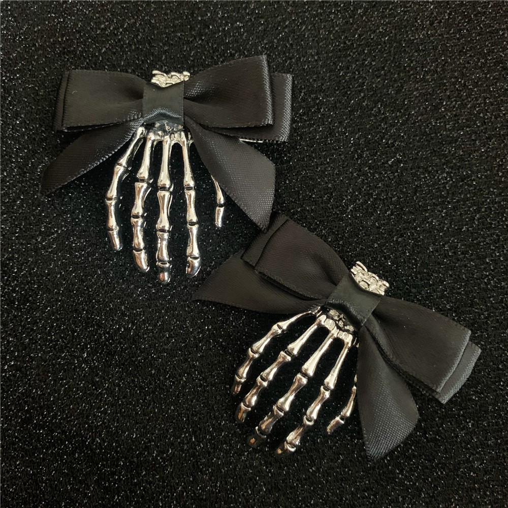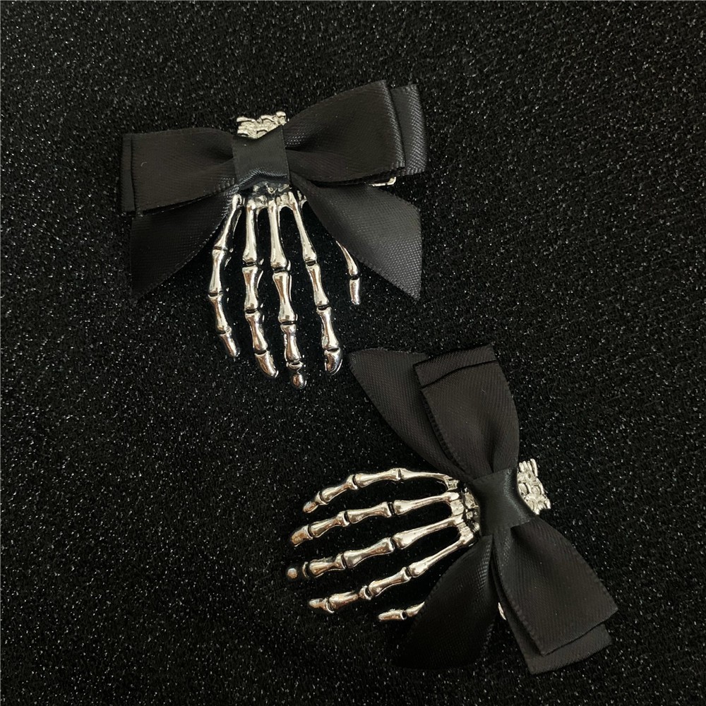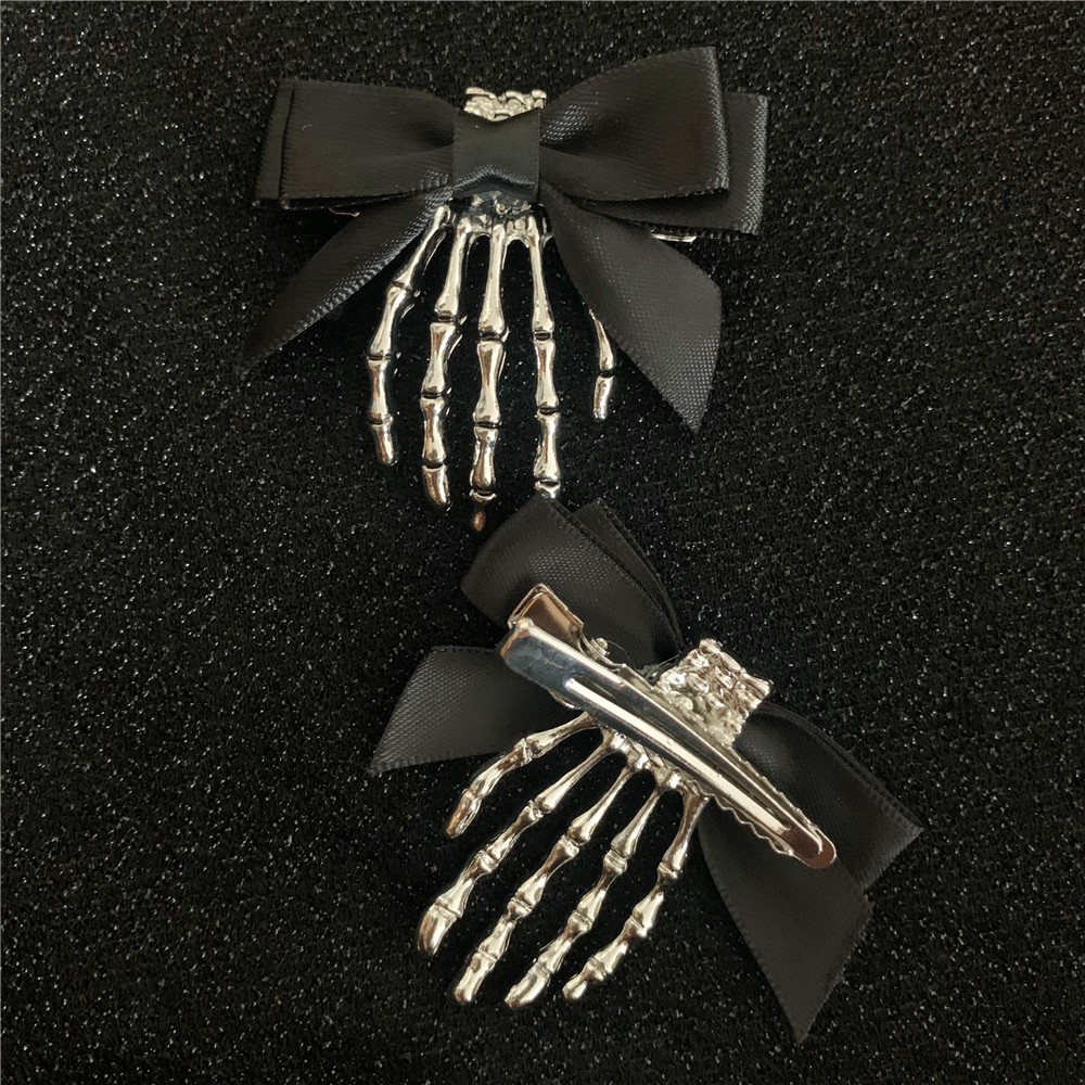 Skeleton Claw Ghost Hand Dark Gothic Girl Halloween Bow Headdress Hairpin Side Clip