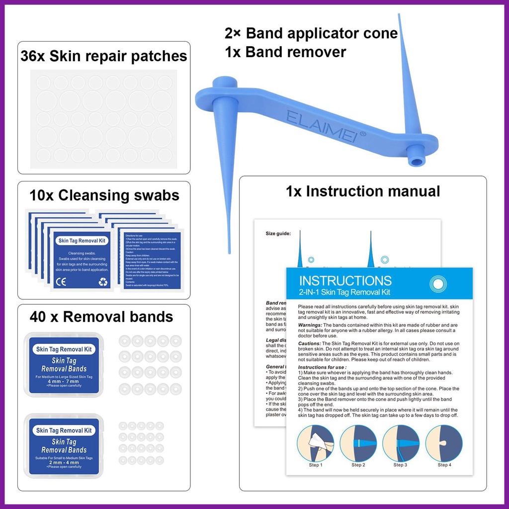 Skin Tags Removal Kit Dual Bands Auto Tags Fast Removal Kit Handy Skin Tags Bands for Removal of 2-7mm Small to teiph