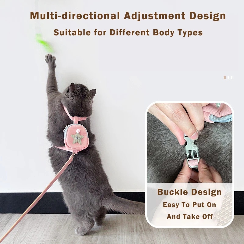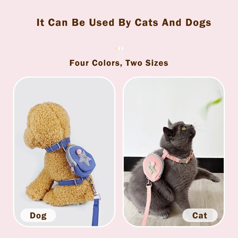 Skisopgo Pet Harness Backpack Dog Cat Adjustable Chest Vest Bag with Leash Travel Pet Harness Set