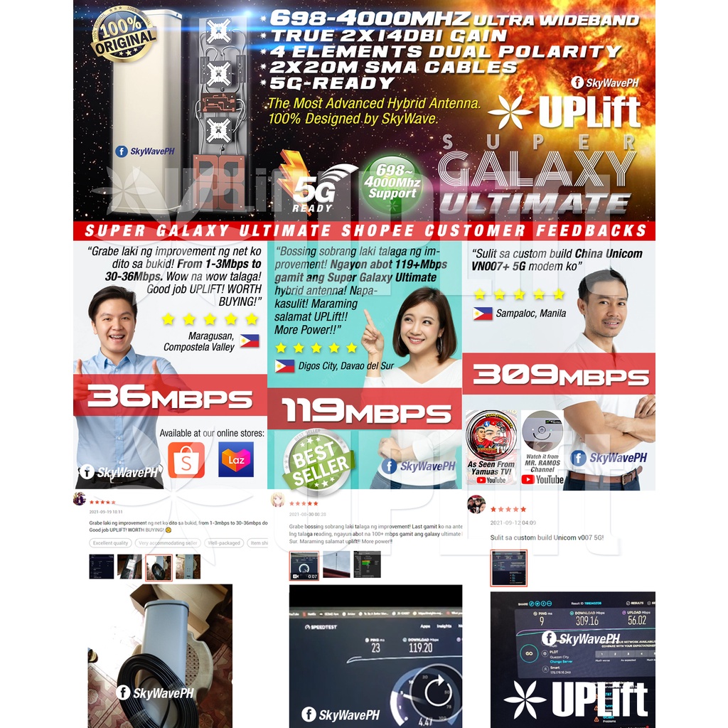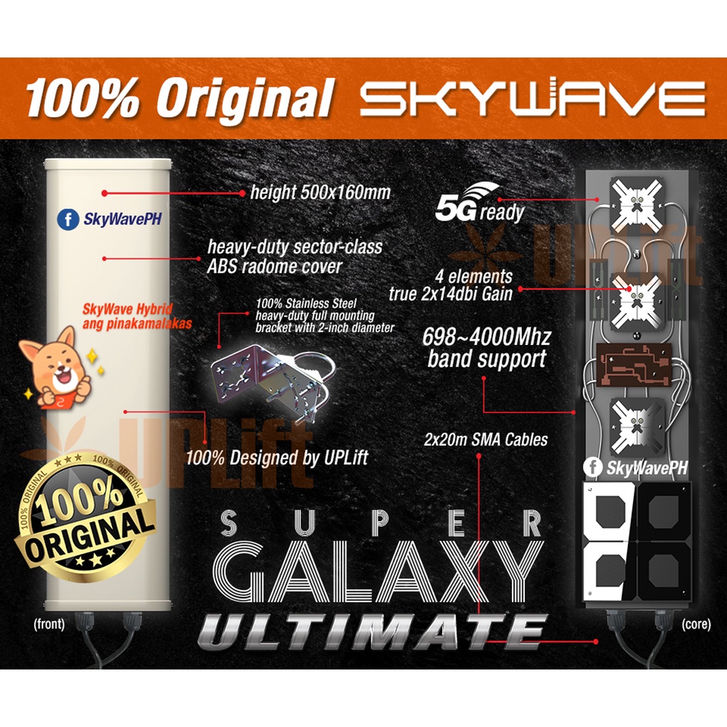 SkyWave Super Galaxy Ultimate Hybrid Antenna New Model 698-4000Mhz 5G-Ready Wifi 2x20m Cable