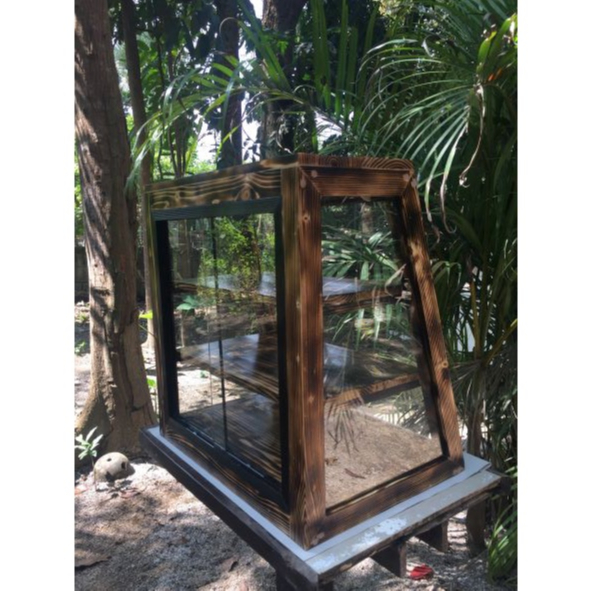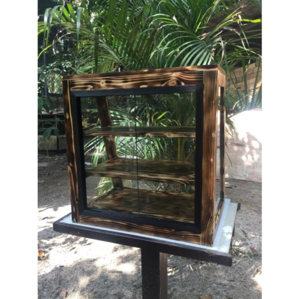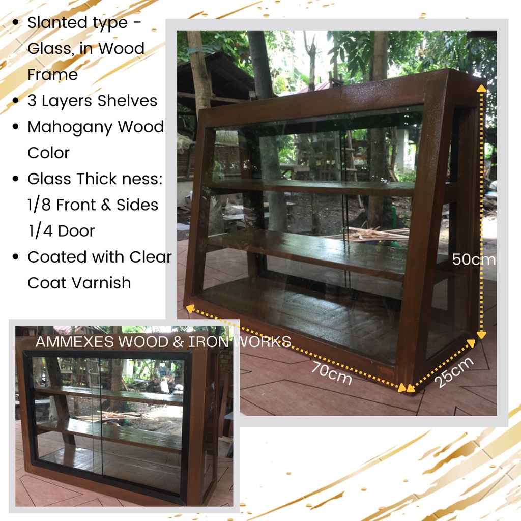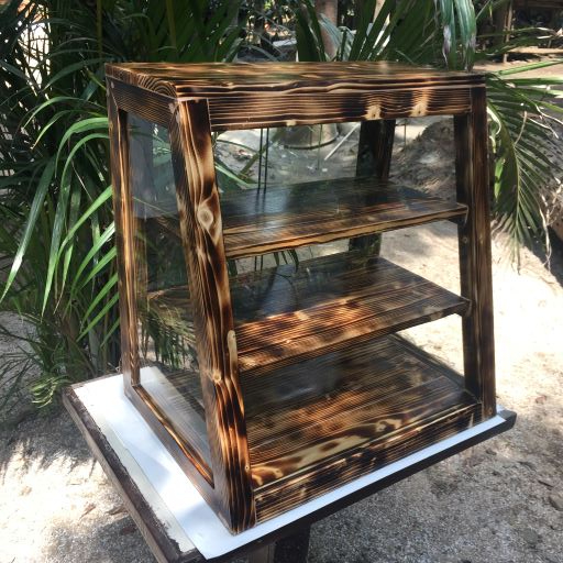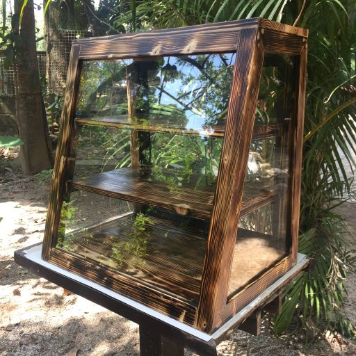 Slanted Burnt 3-Layer Pastry Food Cabinet Glass Wood Display Pastry Baked Goods Pastry Showcase Rack