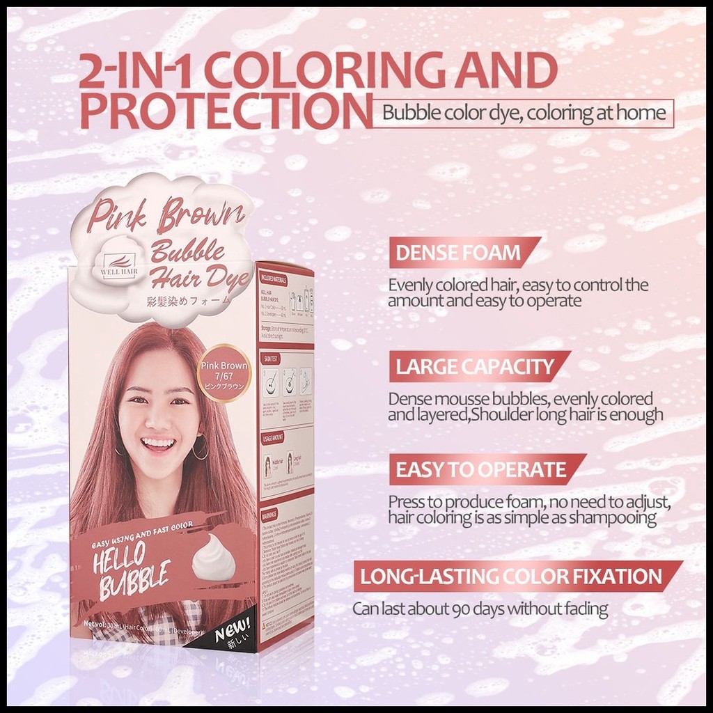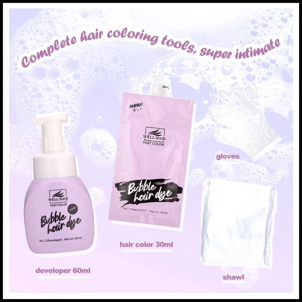 Well Hair Bubble Hair Dye 60ml+30ml Uniform Coloring, Easy Operation, Tools Included WH-R204 ❋