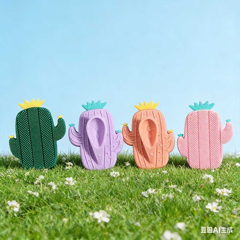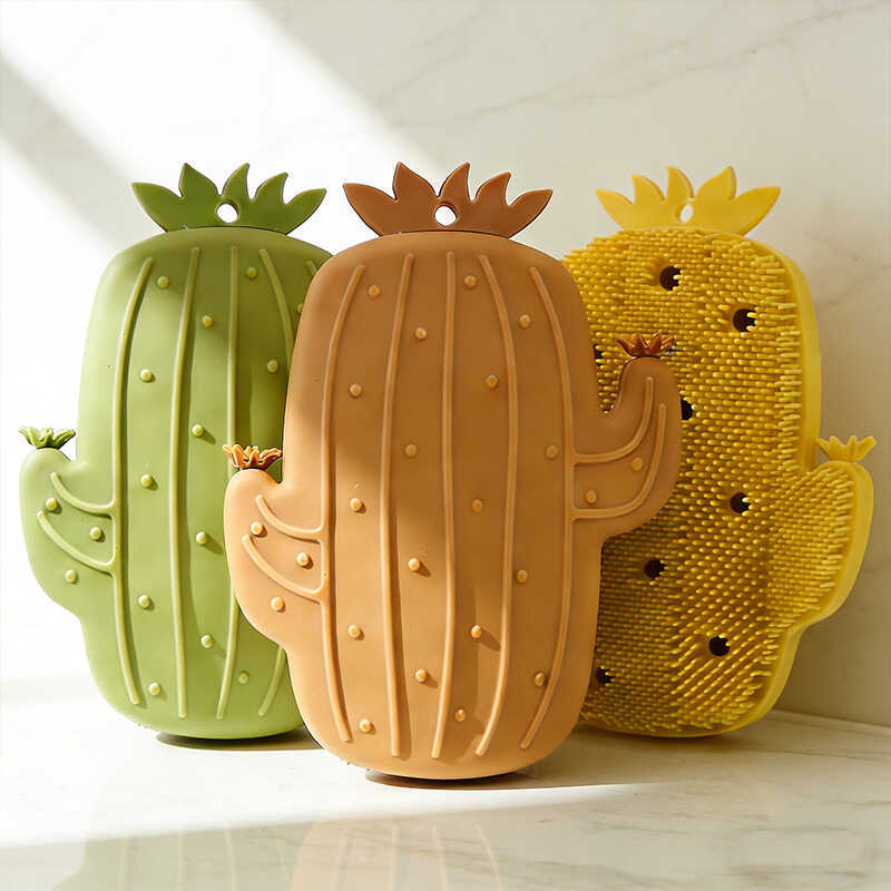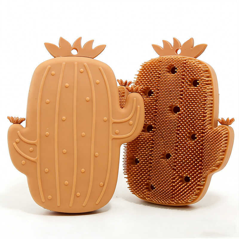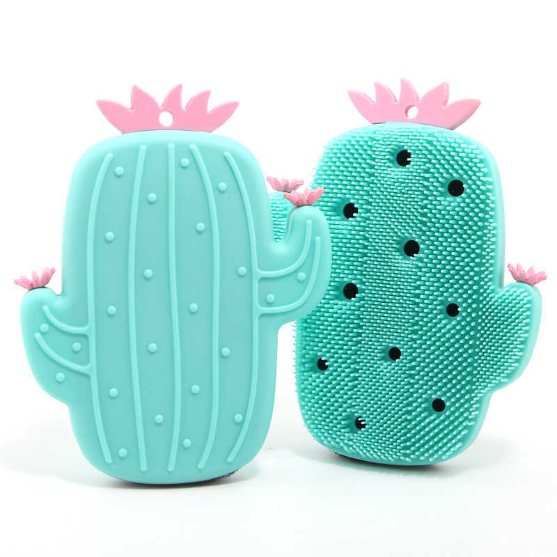 Silicone Unique Cactus Sponge Face Wash Brush Baby Bath Shampoo Brush Face Deep Cleansing Massage Brush