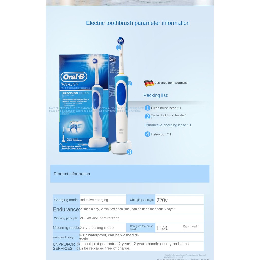 Oral B D12 electric toothbrush for adult men and women, rechargeable rotary waterproof electric toothbrush