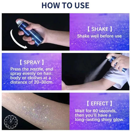 【Buy 1 get 1】 free Night club party glitter spray for Body Hair Clothes Dating Shiny Spray