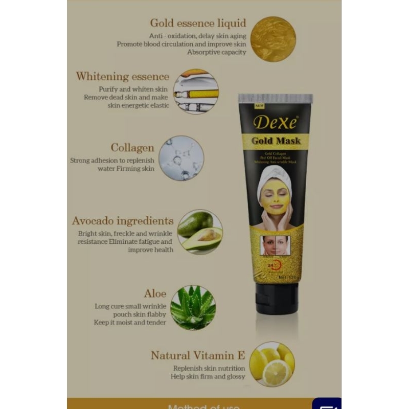 Dexe Peel Off Mask Gold Collagen Whitening Anti-wrinkle 24 Hours Moisturizing 120g ORIGINAL