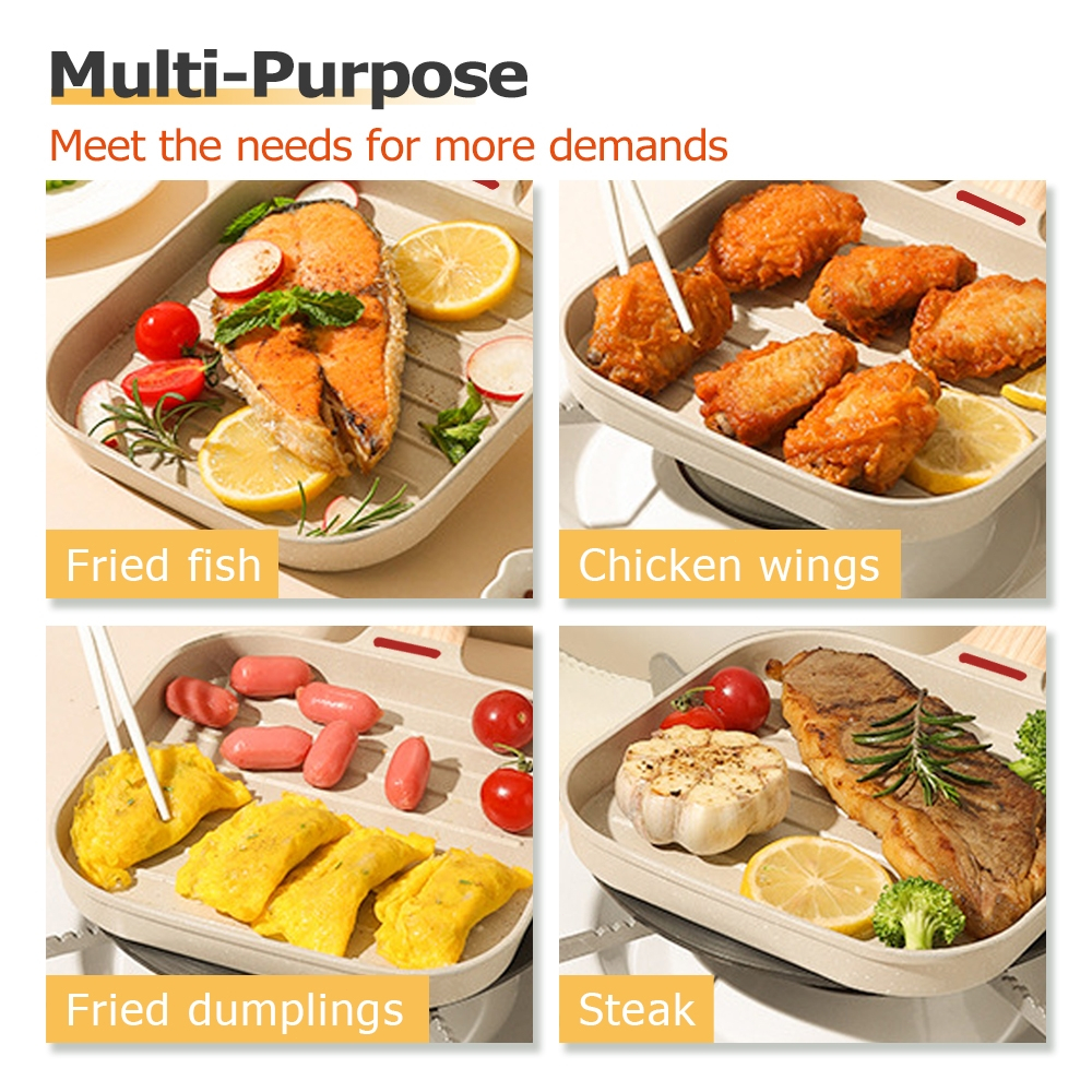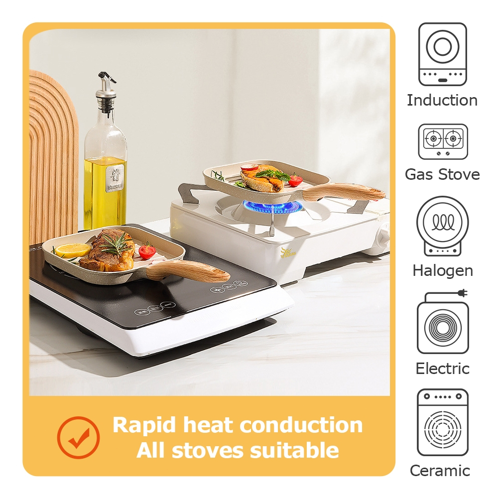 OShine Non Stick Frying Pan Grill Steak Flat Pan For Induction Cooker & Gas Stove