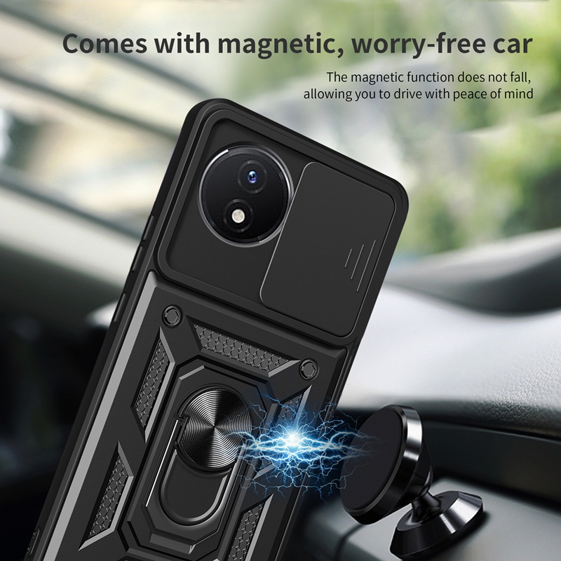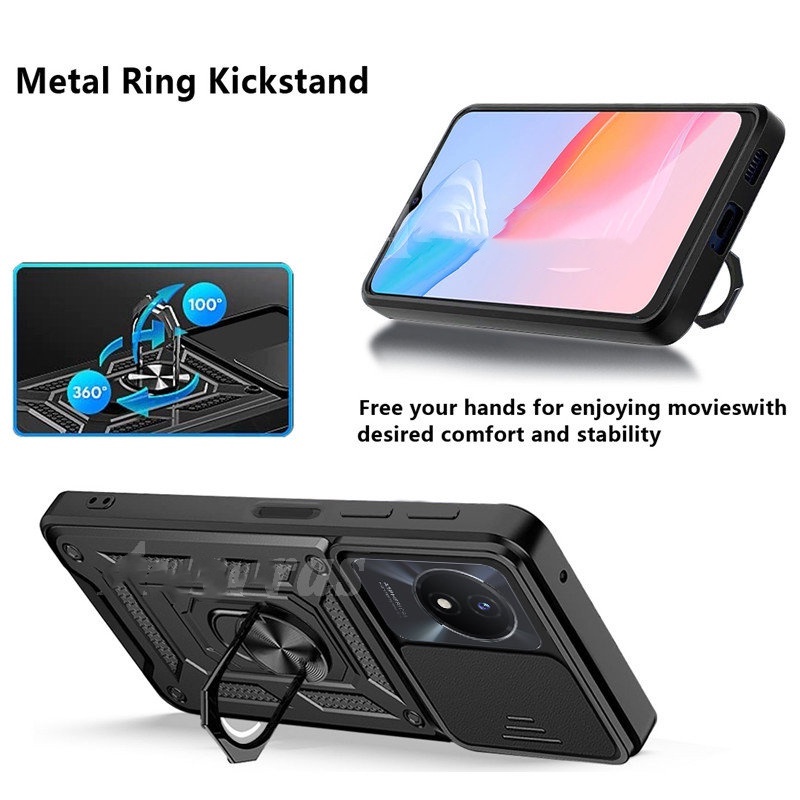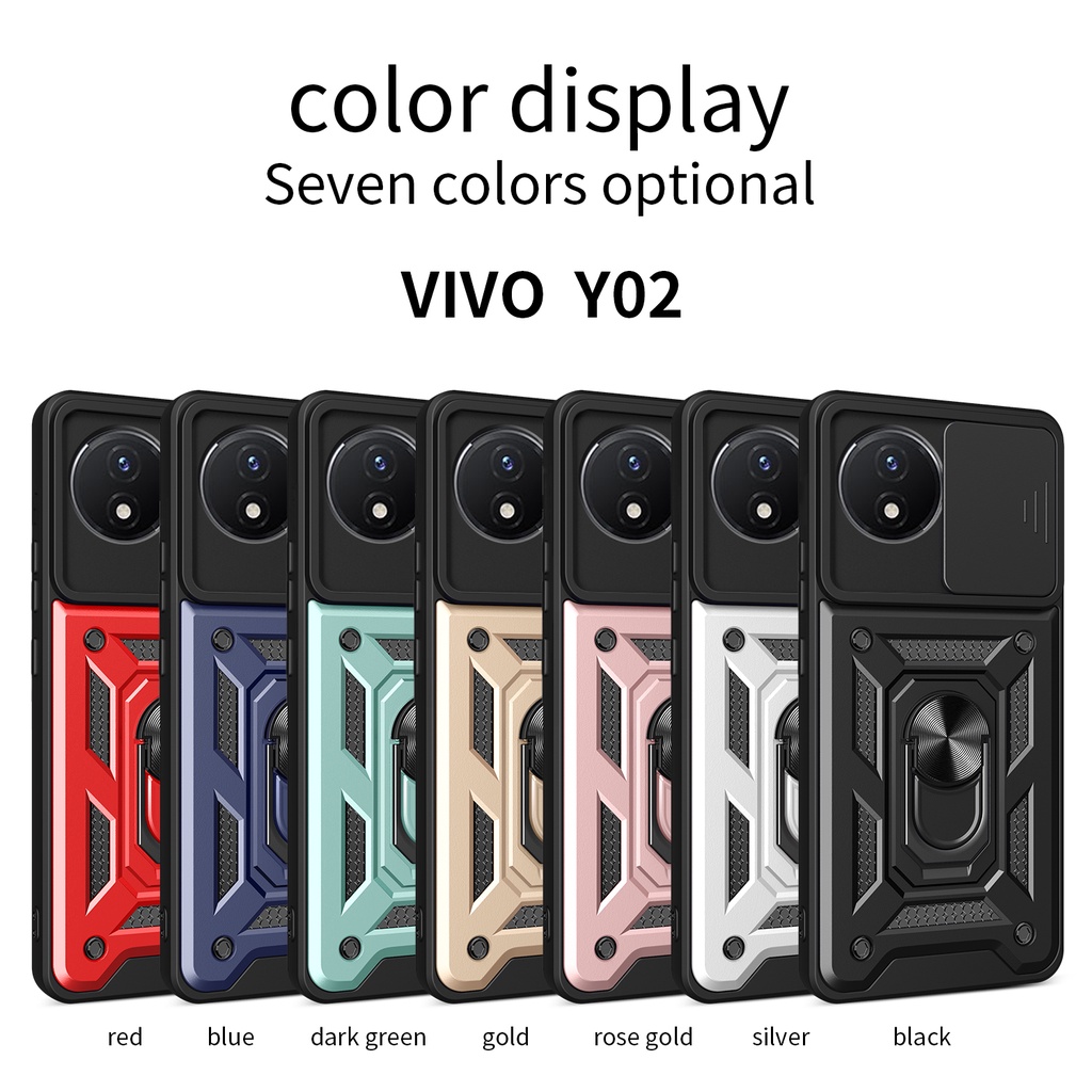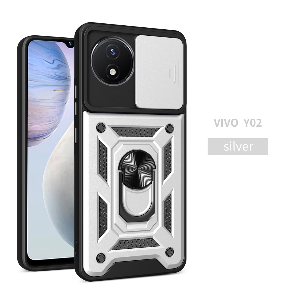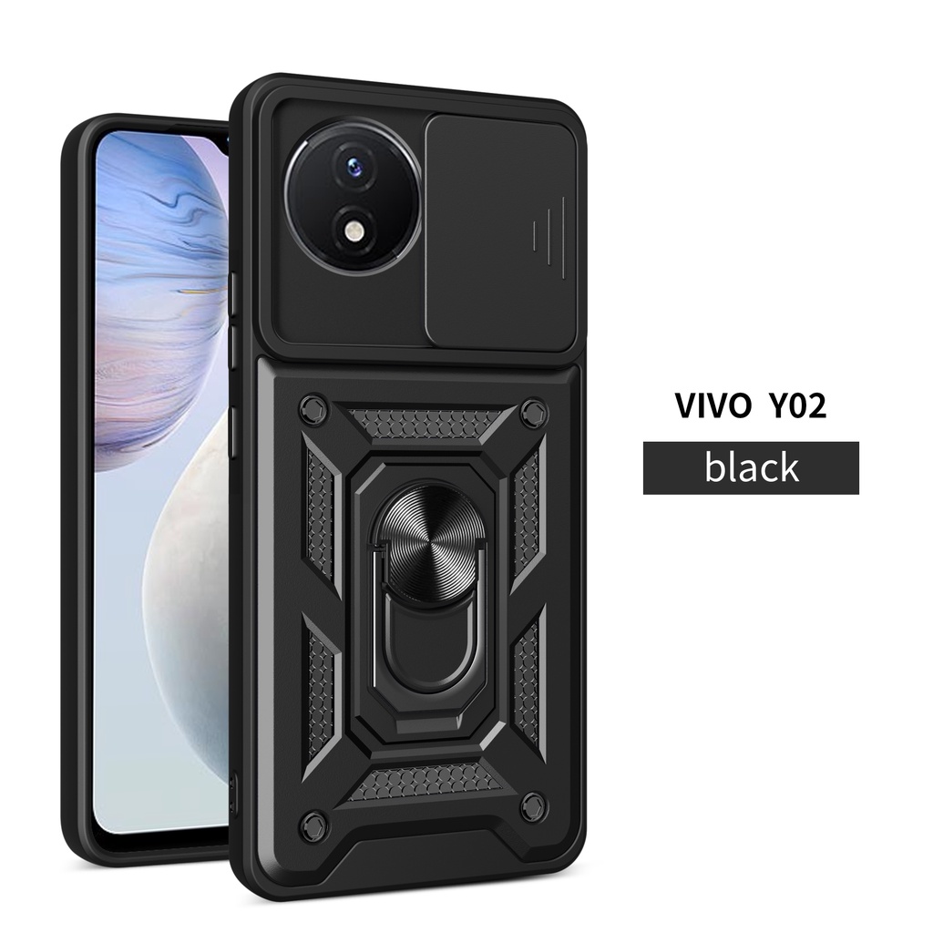Slide Casing For VIVO Y02 Y03 Y03T Y02A Y02T T Phone Case With Magnetic Ring Holder Cover For VIVOY02 Y 02 A VivoY03 VivoY03T Push Pull Camera Protect Case