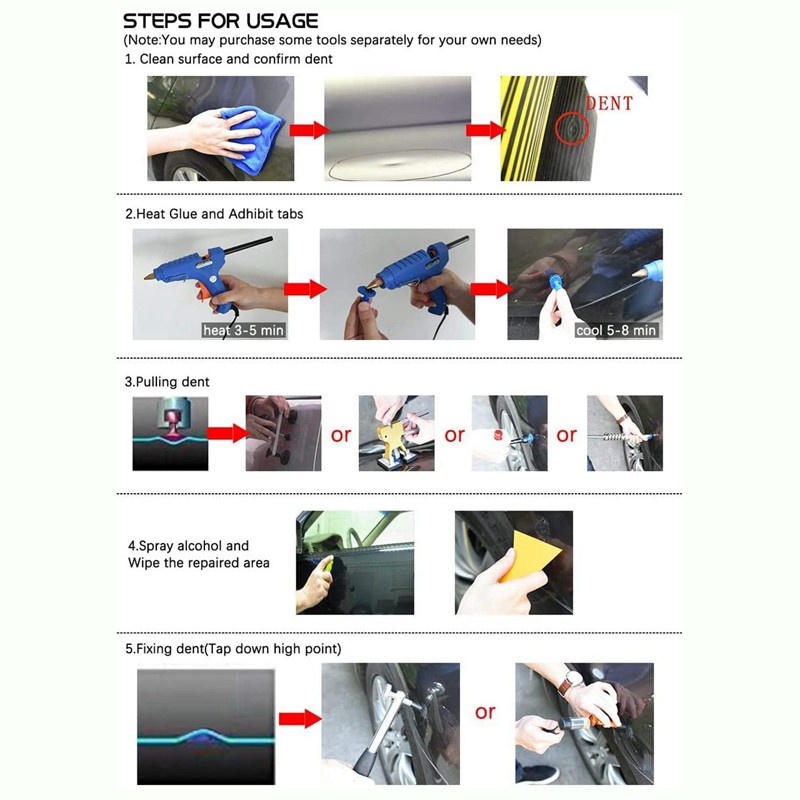 Slide hammer bridge puller T-bar puller PDR body paint free pit repair kit repair tool push rod hook
