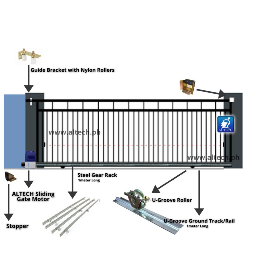 Sliding Gate Hardware Set (Rollers, Tracks, Stopper, Catcher, Guide) AZ-03