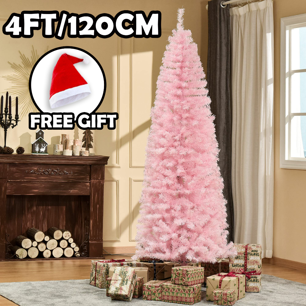 Slim Christmas Tree 4FT/5FT/6FT/7FT/8FT Pink Christmas Tree 7ft Makapal Slim Xmas Tree 4/5/6/7/8FT