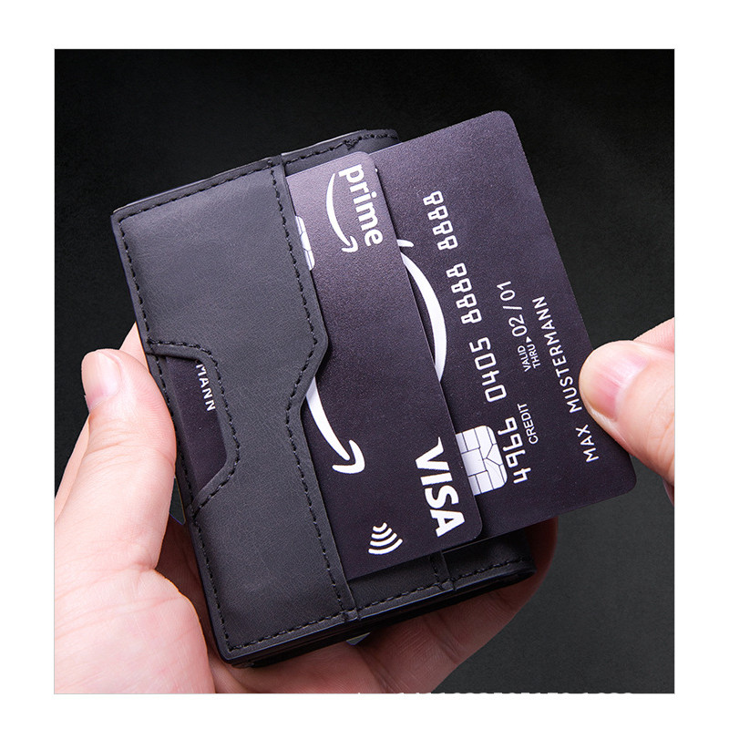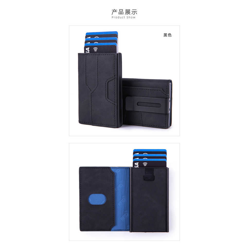 Slim RFID Blocking Pocket Wallet Minimalist Pop up Card Holder With Magnetic Closure Credit Card Case