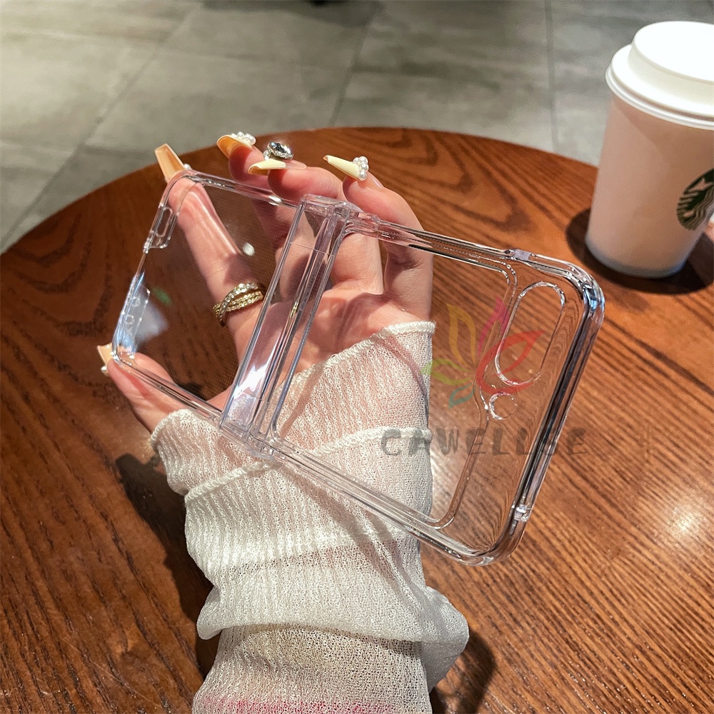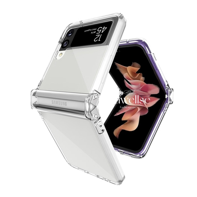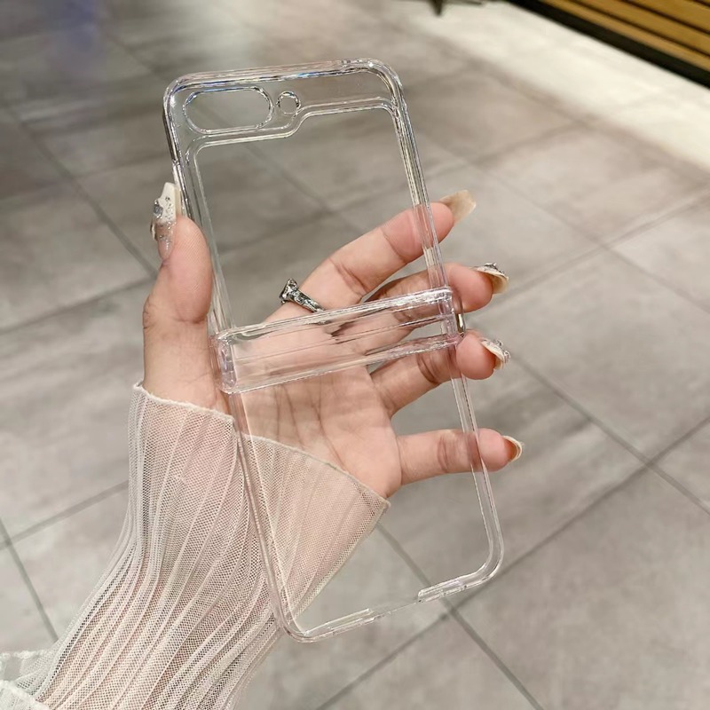 Slim Transparent Phone Casing Samsung Galaxy Z Flip 6 Flip 5 Flip 4 Clear 3 In 1 Full Hinge Protection Hard PC Case