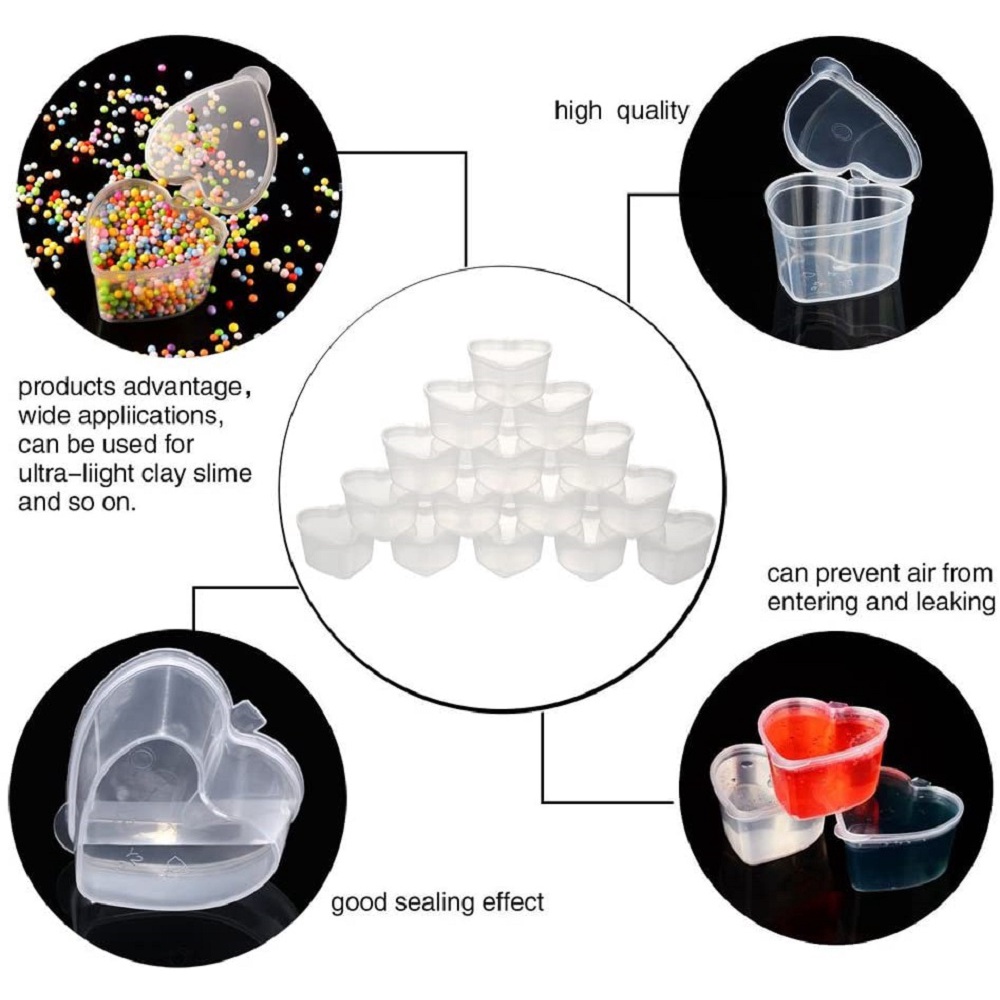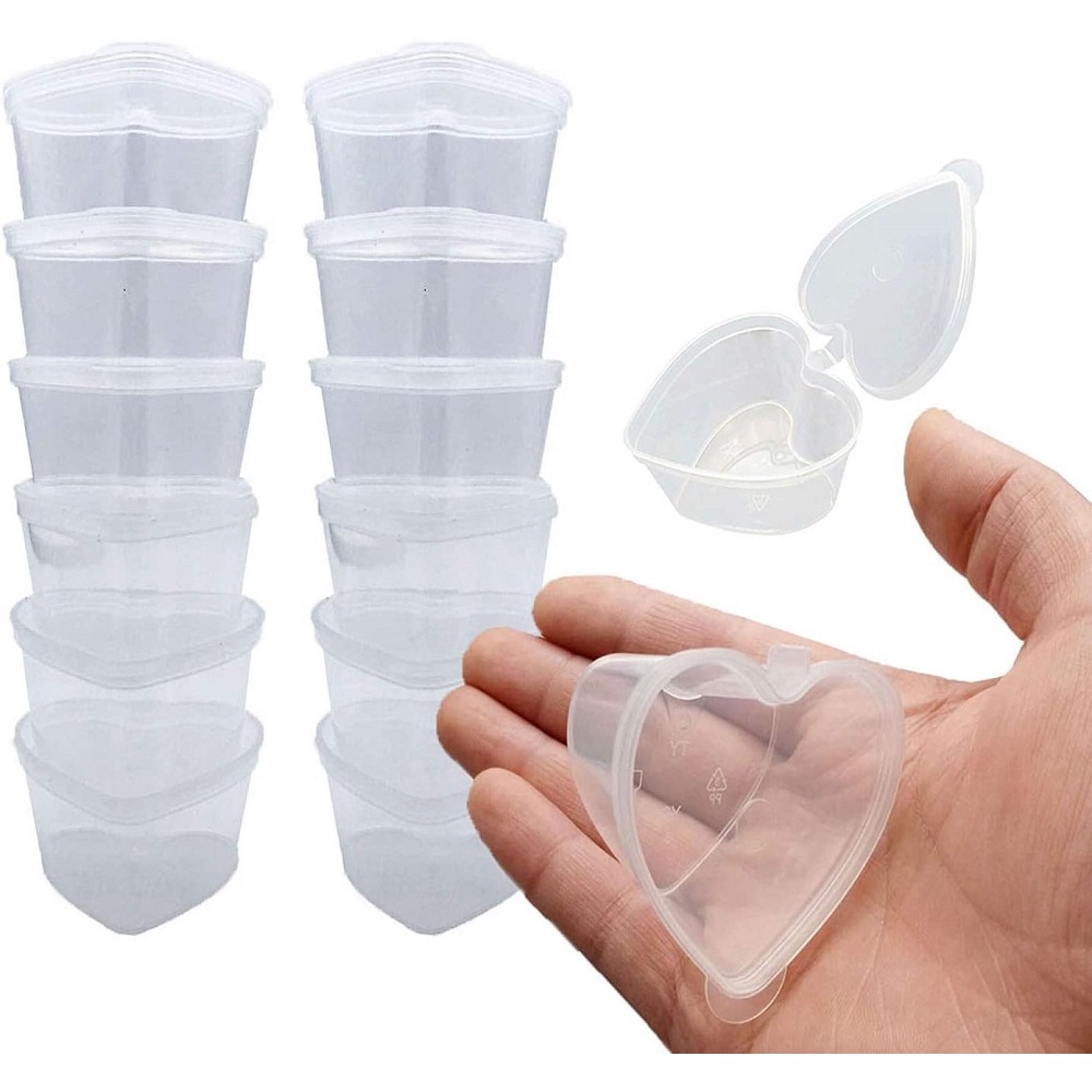 Slime Containers Heart-Shaped Clear Plastic Storage With Lids For 20g / 45ml Clay Foam Ball 20 Packs