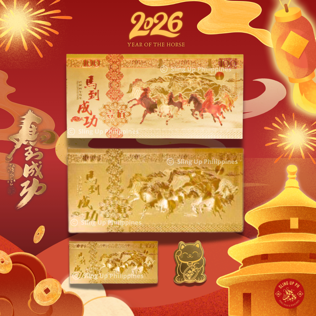 SlingUp Lucky Charm 2026 Year of the Horse Golden Money Foil For Money Prosperity Good Fortune Gift