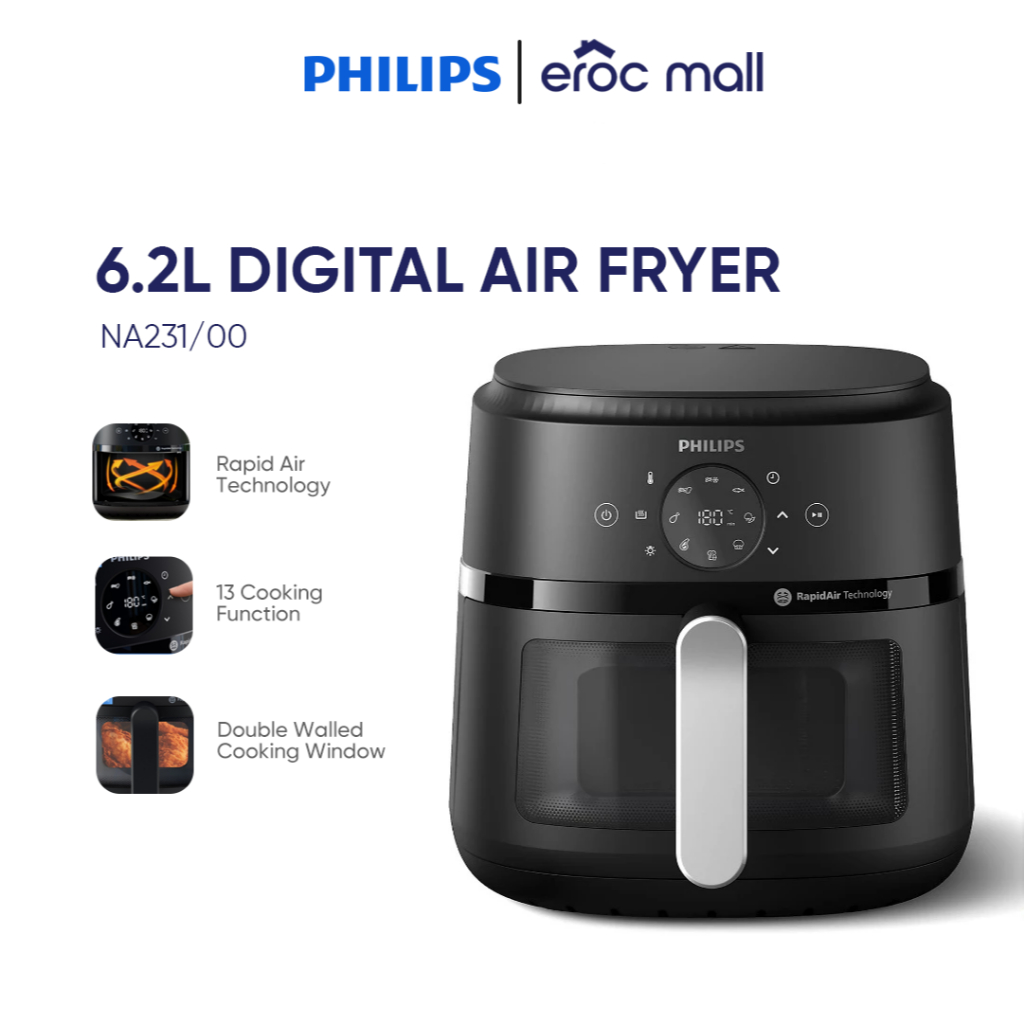 PHILIPS Digital Air Fryer NA231/00 Healthy Low Fat Multi-Cooker 6.2 Liters, Non-Stick Frying Basket