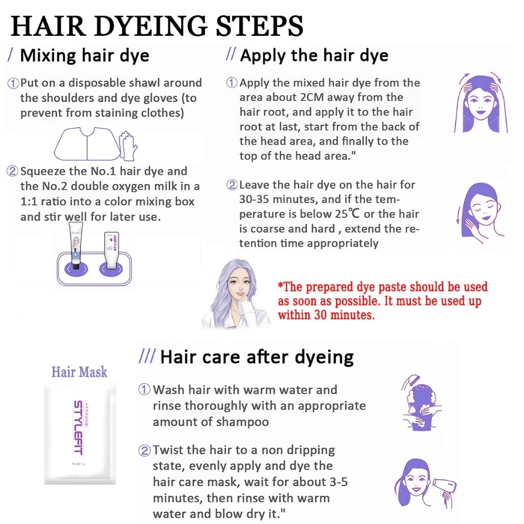 STYLEFIT Hair Color Milk Tea Hair Color【100ml Hair Dye+100ml Oxidant】Hair Color No hurting the Hair