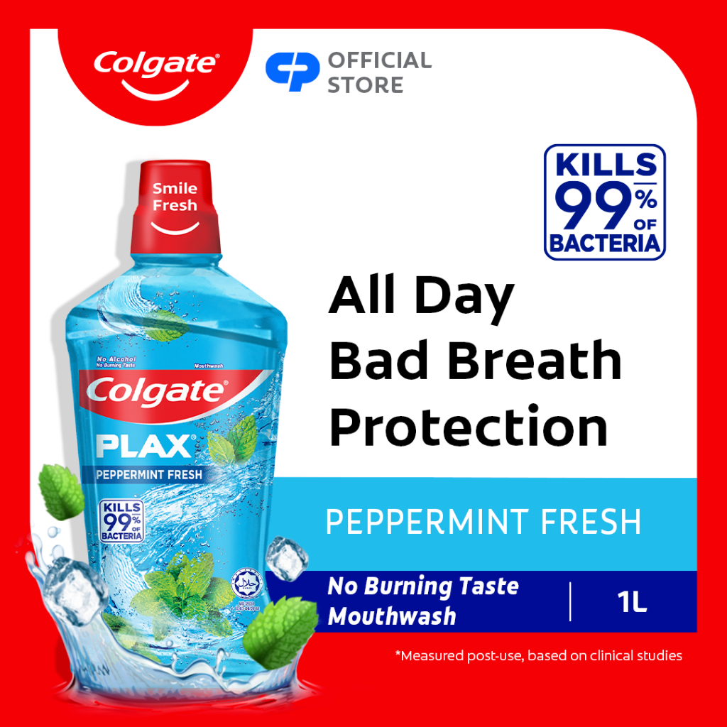 Colgate Plax Antibacterial Mouthwash Peppermint, No-Alcohol, Long-Lasting Freshness 1L