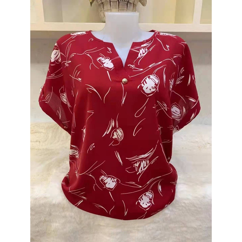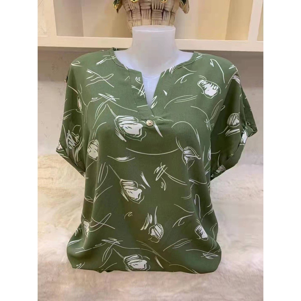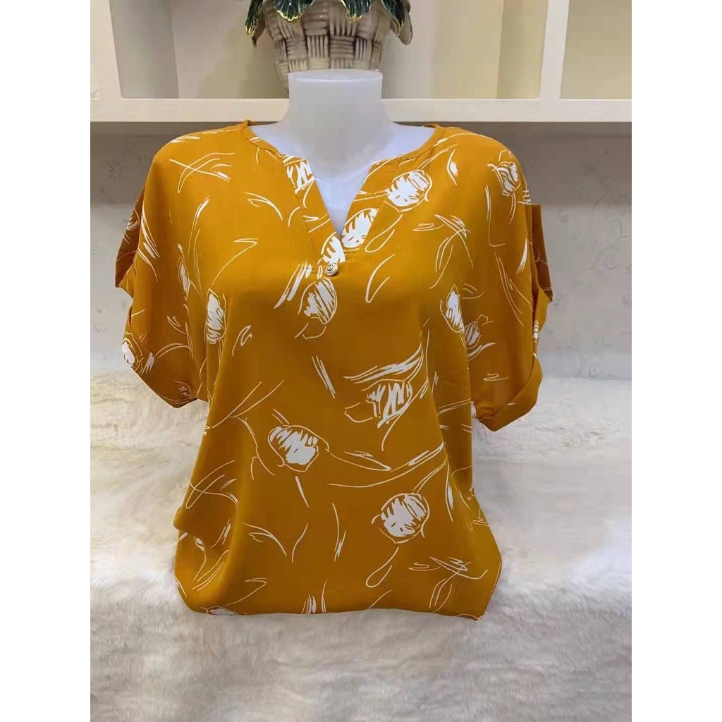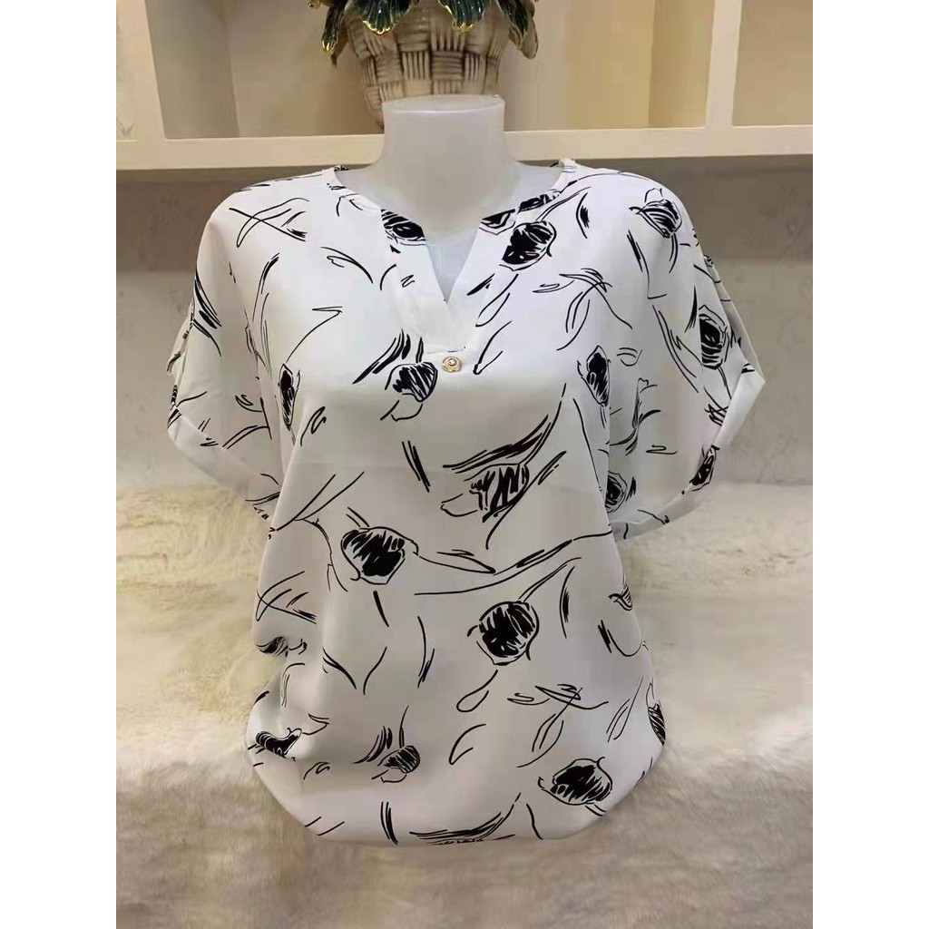 Bangkok<x;Floral%Qb]V Neck Short Sleeves Casual Plus Size Blouse For Big SIze Women<sA<7-fY?Colors