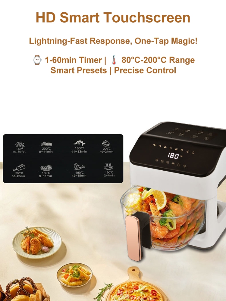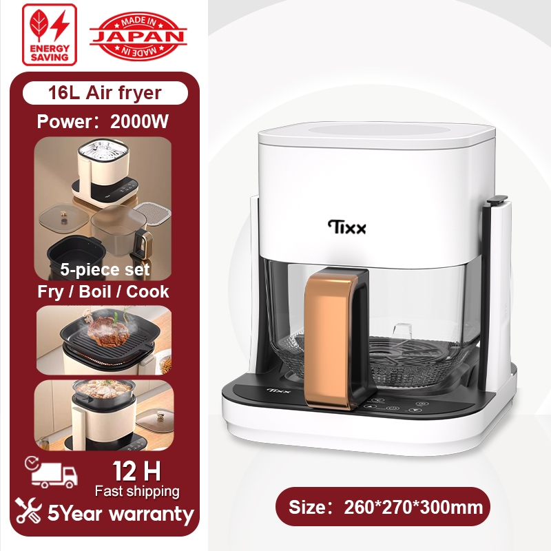 TIXX Air Fryer 9L Visual Glass Digital Touch Screen Smokeless Fully Automatic Oil Free Non-Stick Pan